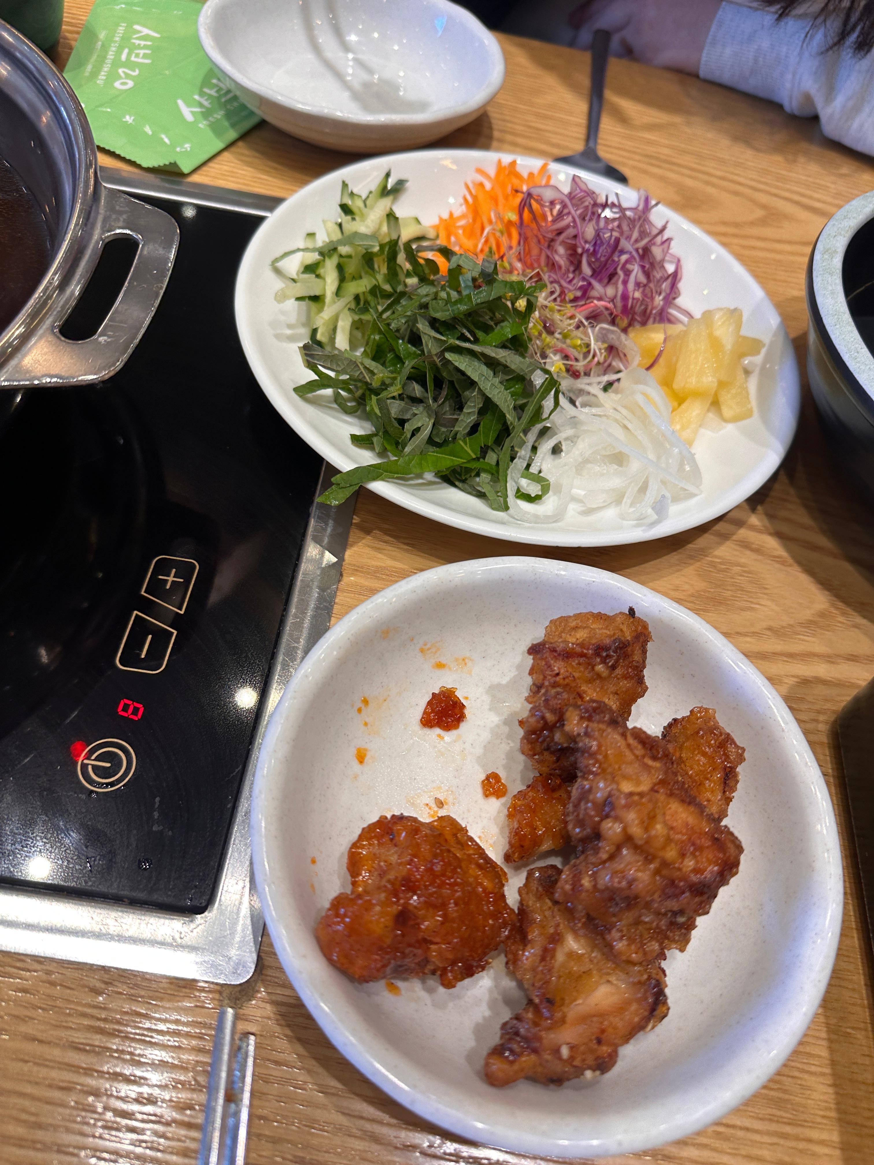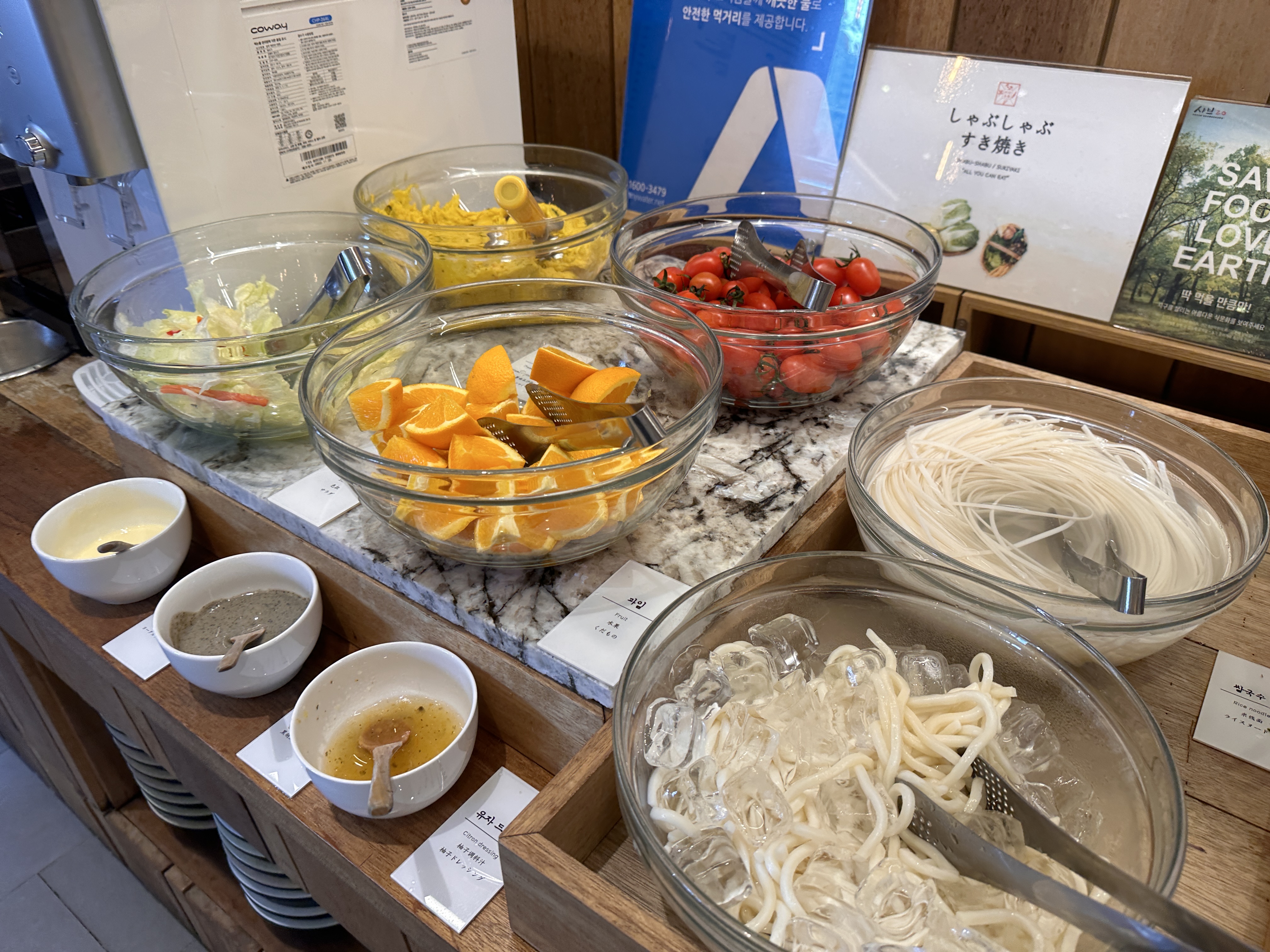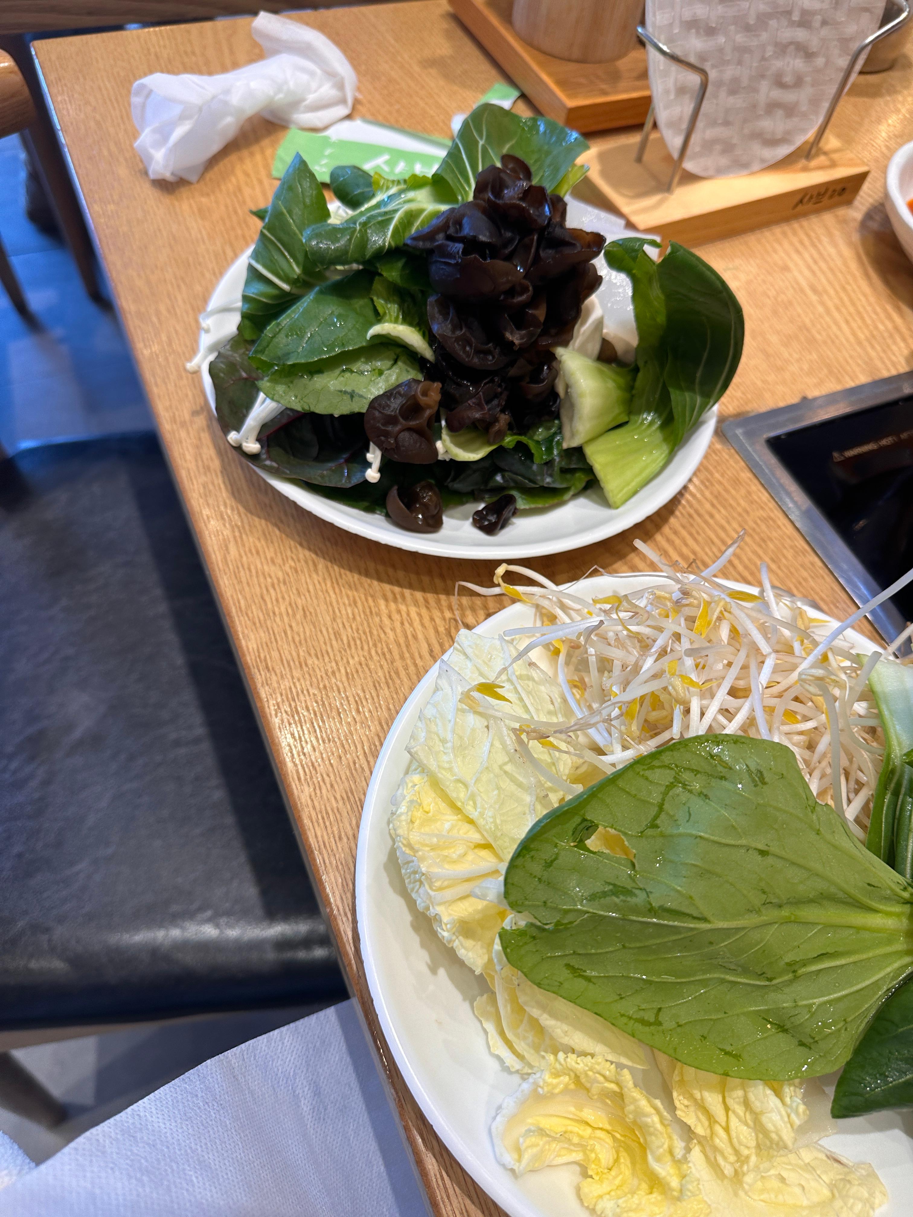 반찬으로는 샐러드나 김치, 피클 등이 기본적으로 제공됐는데, 전체적으로 깔끔한 맛을 유지하고 있었습니다. 물론 샤브샤브가 메인이라 반찬 가짓수가 엄청나게 많은 건 아니었지만, 특유의 국물 요리에 집중하도록 구성되어 있다는 느낌이었죠.