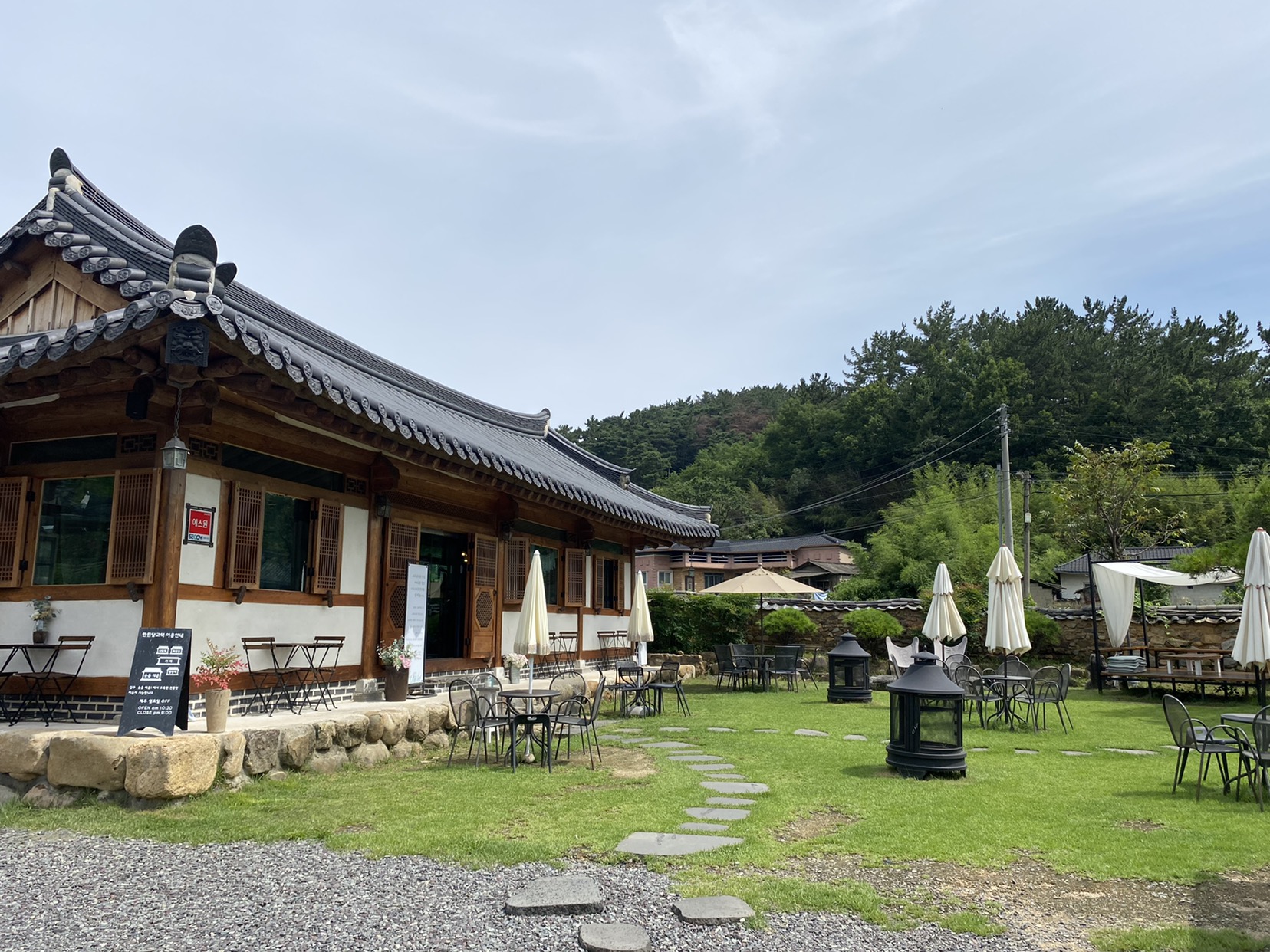 사실 오전 일찍 방문했는데, 오후에 갈수록 더운 날씨가 되면서 야외가 불편해질 수 있겠다 싶었습니다. 다만 한옥 특유의 처마 그늘이 꽤 시원해 어느 정도 대처가 가능했고, 필요하다면 실내 테이블로 옮길 수도 있었어요. 가을철엔 단풍과 은은한 날씨가 어우러져 더 멋진 분위기를 자아낼 듯합니다.