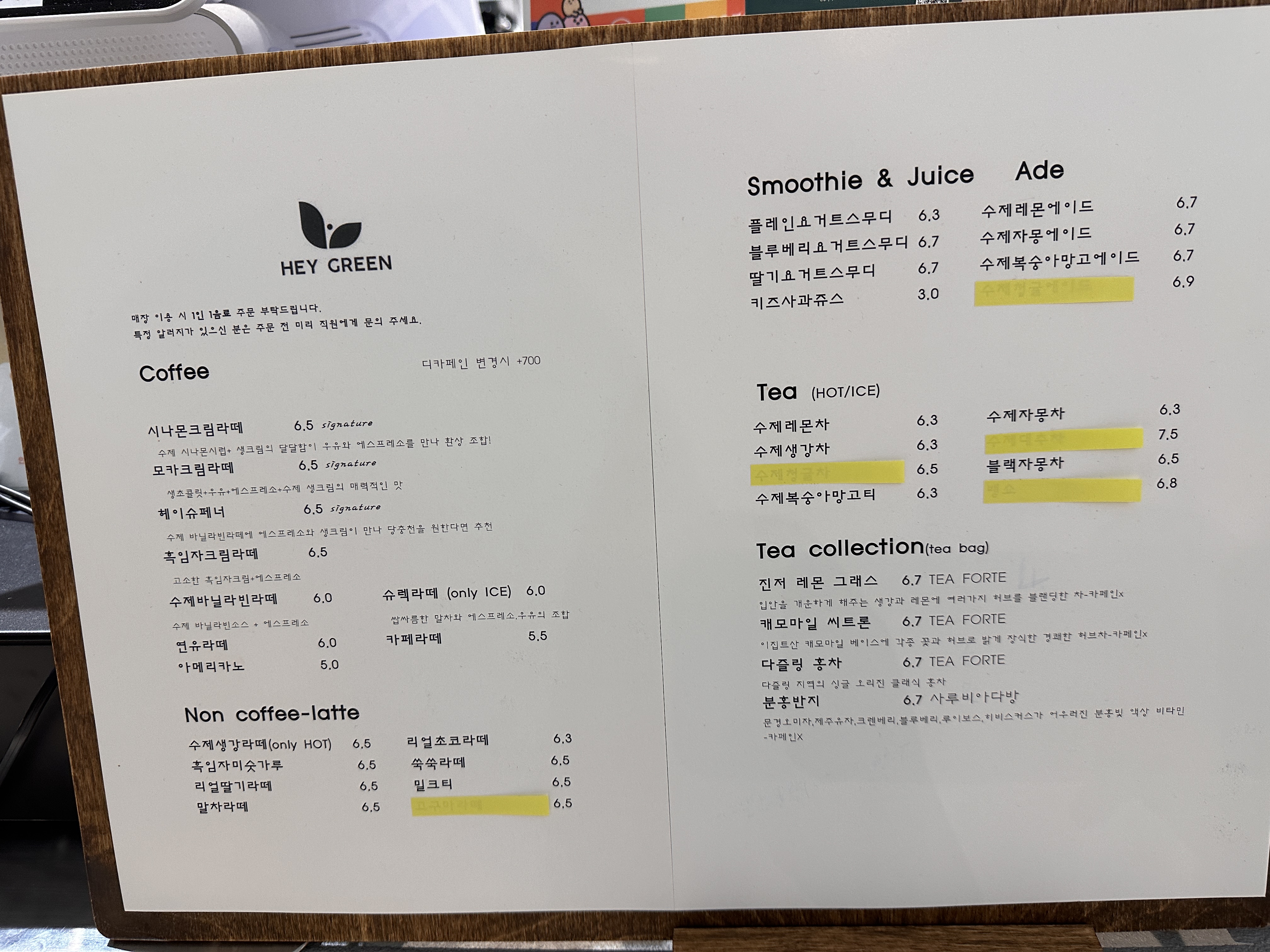 3. 주요 메뉴: 블루베리 모찌빵·쑥쑥라떼·레몬에이드