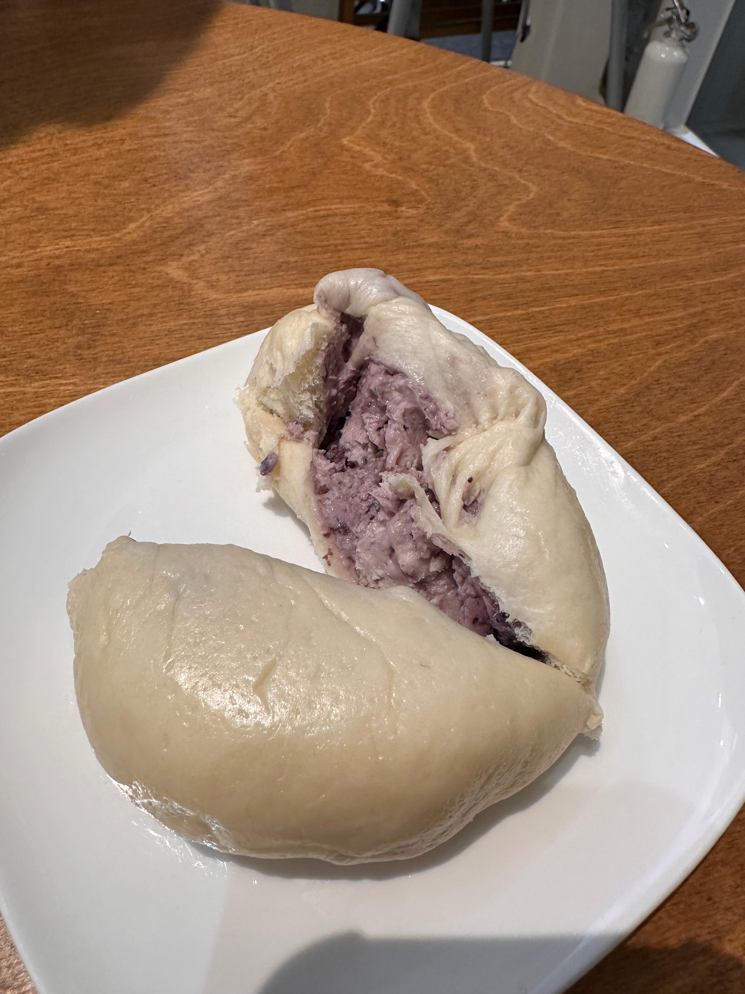 가게 문을 열고 들어가니, 먼저 진열대에 놓인 빵들이 눈길을 사로잡았어요. 종류가 여러 가지 있었지만, 제가 처음부터 찍어둔 건 블루베리 모찌빵이었죠. 이름이 너무 귀여워서 실제 모습은 어떨지 궁금했는데, ‘모찌’라는 말 그대로 살짝 눌러보면 쫀득쫀득한 탄성이 느껴져요. 반죽 자체도 일반 빵과는 달라, 첫인상부터 “이건 꼭 먹어봐야겠다!”라고 마음먹게 하더군요.