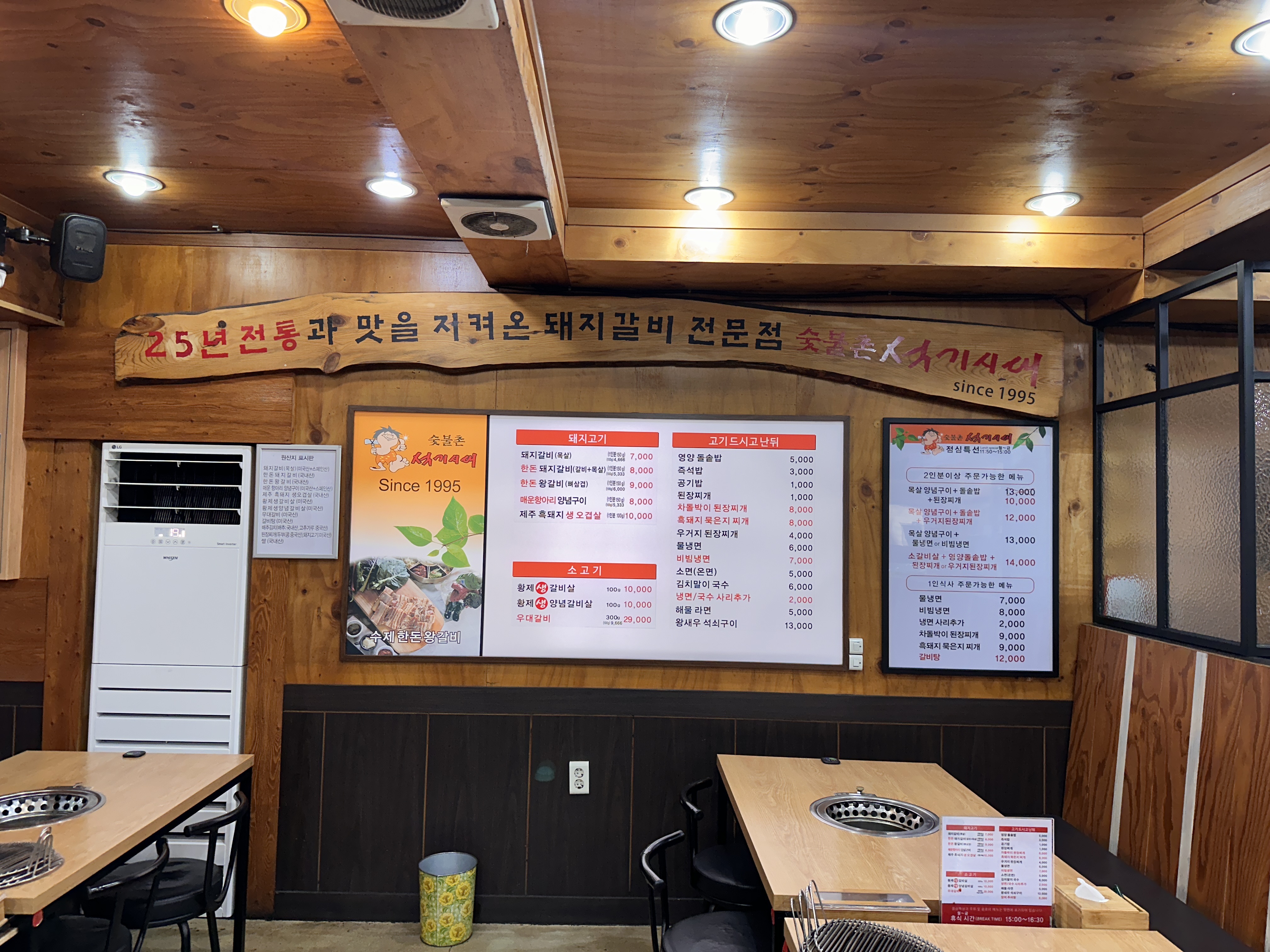 이곳 숯불촌석기시대는 이름처럼 숯불을 사용해 고기를 구워 먹는 것이 특징입니다. 여러 메뉴가 있었지만, 단연 인기라는 한돈왕갈비를 선택했습니다. 손질된 돼지갈비에 양념이 적당히 배어 있어, 불판 위에서 익어갈 때 풍기는 달콤한 향이 예술이라고 하더군요.