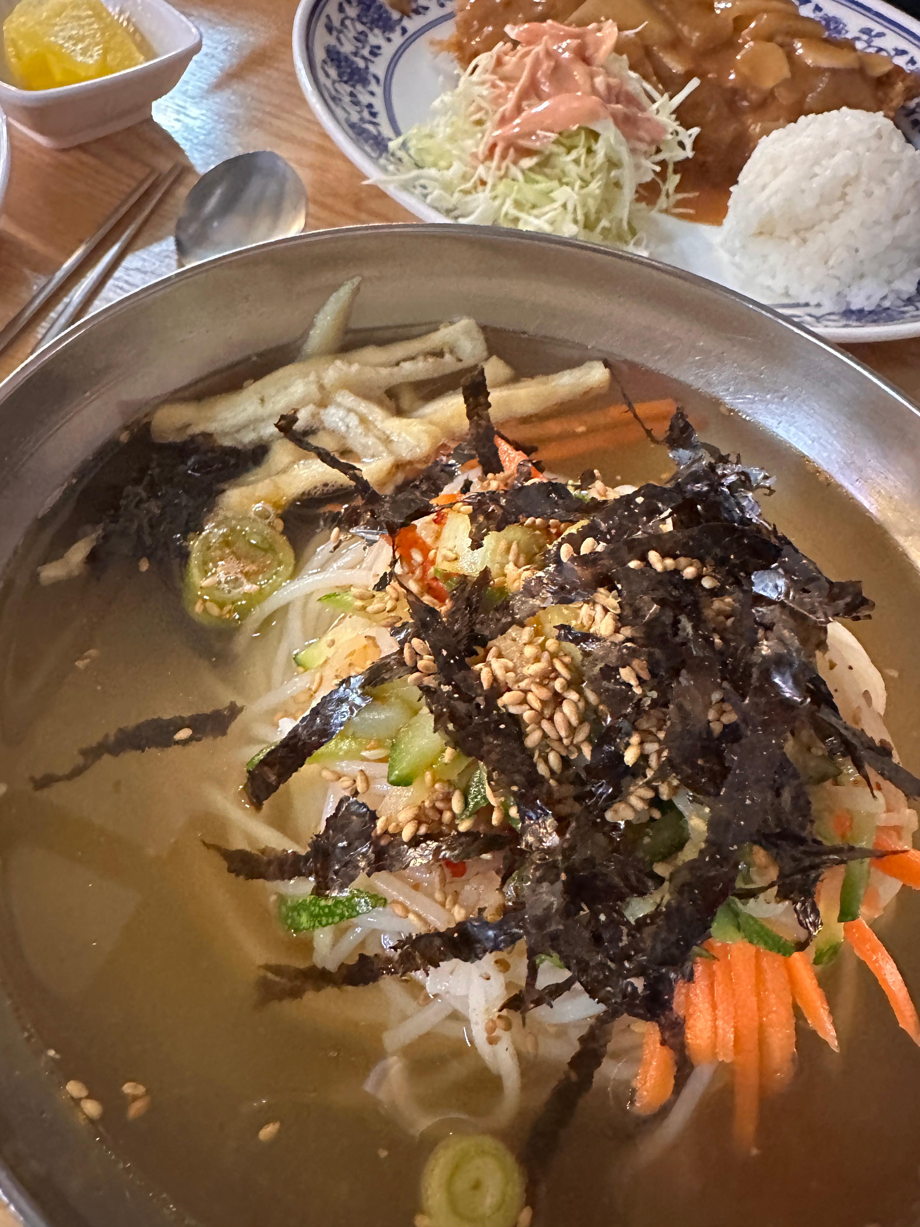 특히 돈까스와 온국수 조합이 이렇게까지 맛있을 줄은 미처 몰랐습니다. 비빔 스타일로 강렬한 양념만을 내세우는 게 아니라, 온국수의 담백함과 돈까스의 바삭함을 잘 살린 구성이 인상 깊었어요. 역시 재료의 신선도와 손맛이 뒷받침되어야 할 수 있는 결과물이 아닐까 싶습니다.