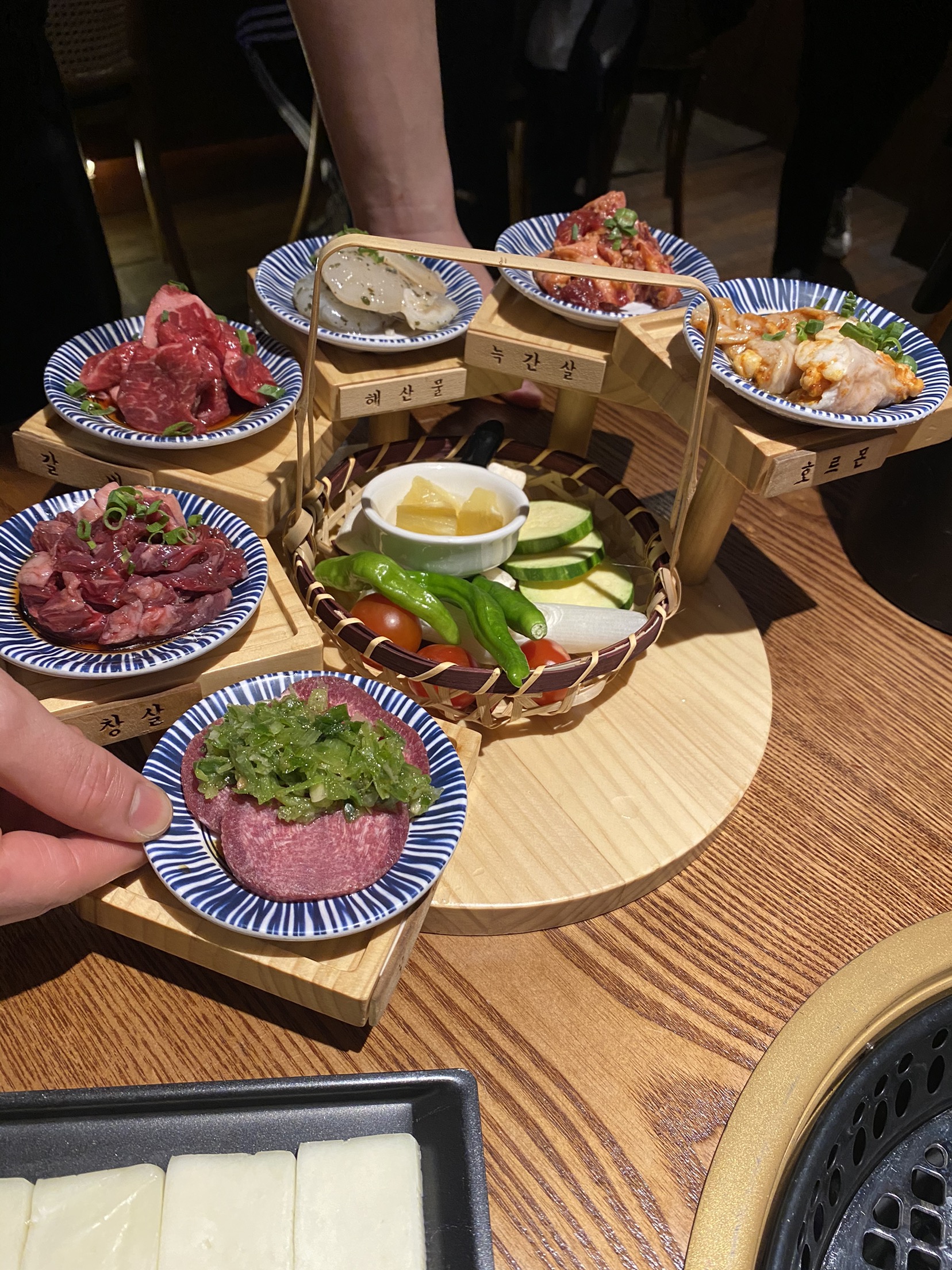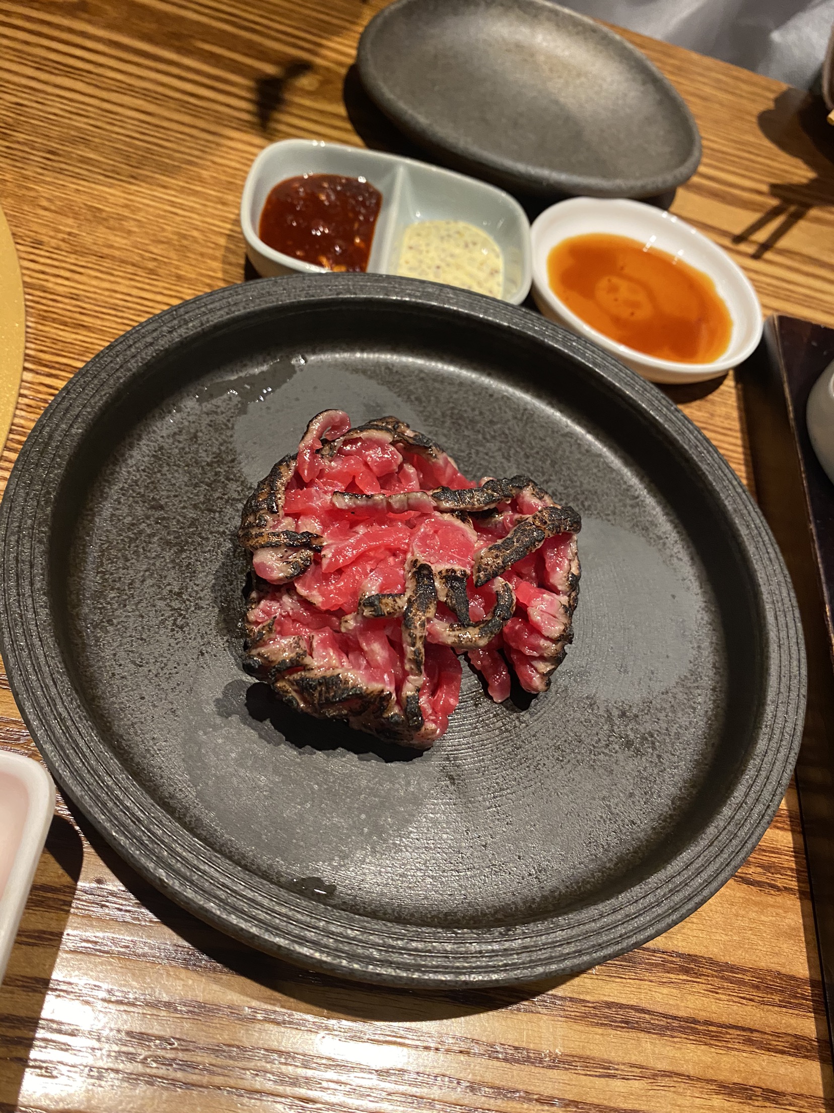 하이볼을 한 잔 마시고, 목이 말라 도중에 시원한 맥주를 주문할까 고민했으나, 이미 하이볼 + 야키니쿠 조합만으로도 충분히 행복한 시간이었기에 일행과 충분히 만족했습니다. 고기가 조금씩 익어갈 때마다 숯불향이 식욕을 자극해, 1시간 넘게 쉬지 않고 구워 먹었던 것 같아요.