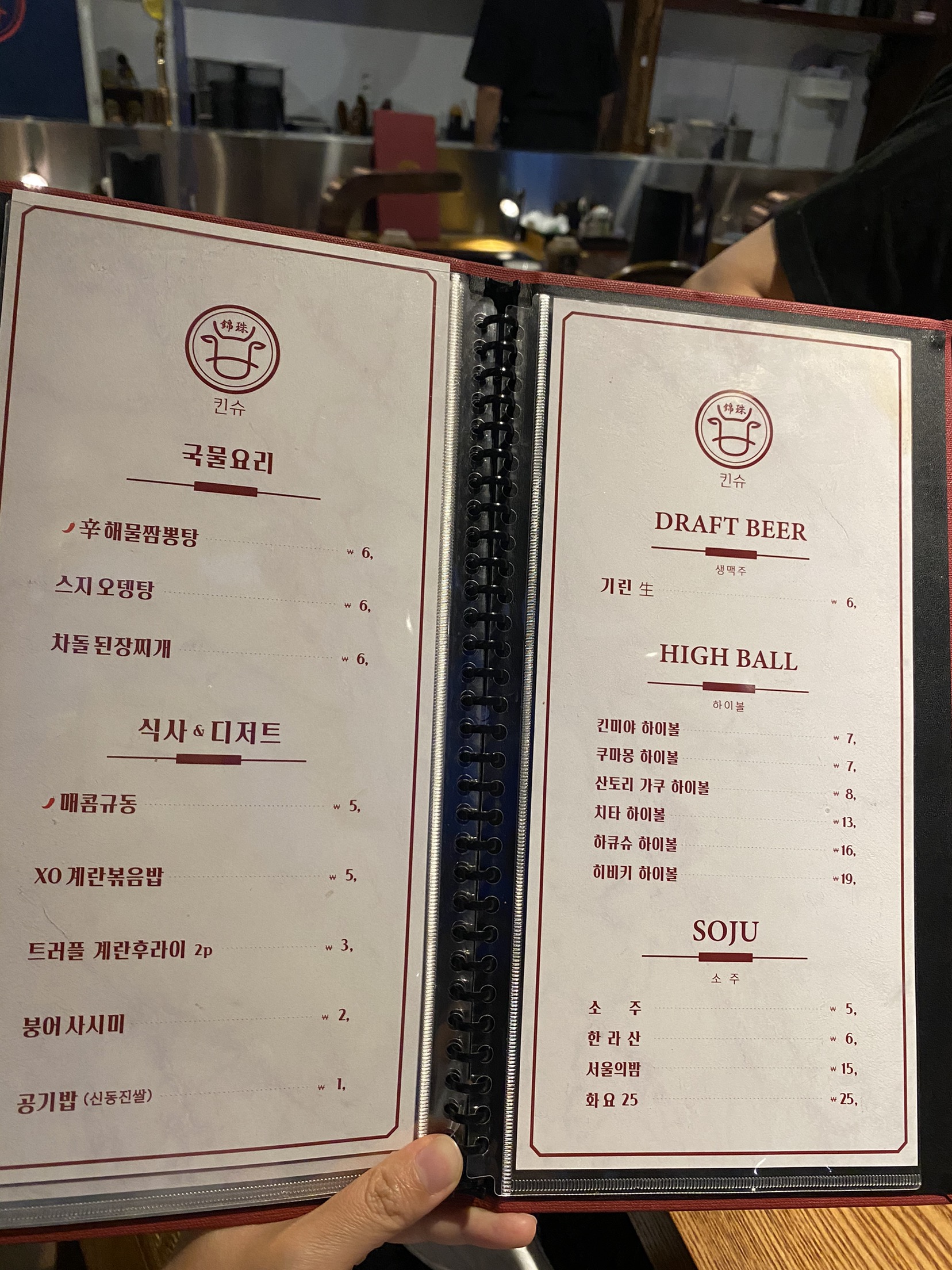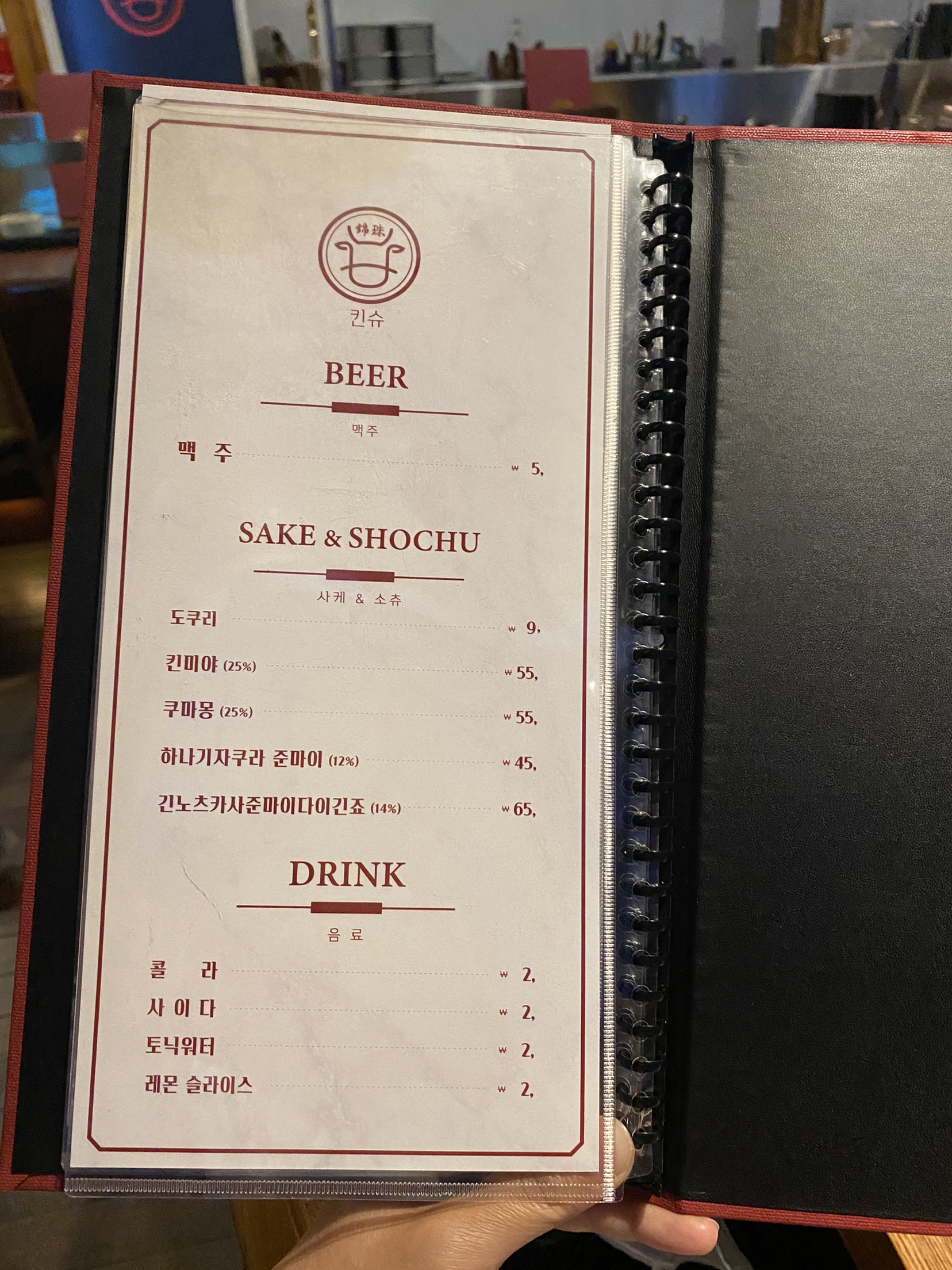 킨슈에서는 야키니쿠(일본식 숯불구이)와 사케·하이볼 등 주류를 함께 즐길 수 있는 구성이 주력입니다. 소고기와 돼지고기를 부위별로 준비해, 직접 구워 먹는 형태가 기본이고, 각종 밑반찬과 소스가 함께 곁들여진다고 해요. 저는 그중에서도 소고기 야키니쿠 세트를 눈여겨봤고, 하이볼은 스테디셀러라는 이야기를 들어 곧바로 선택했습니다.