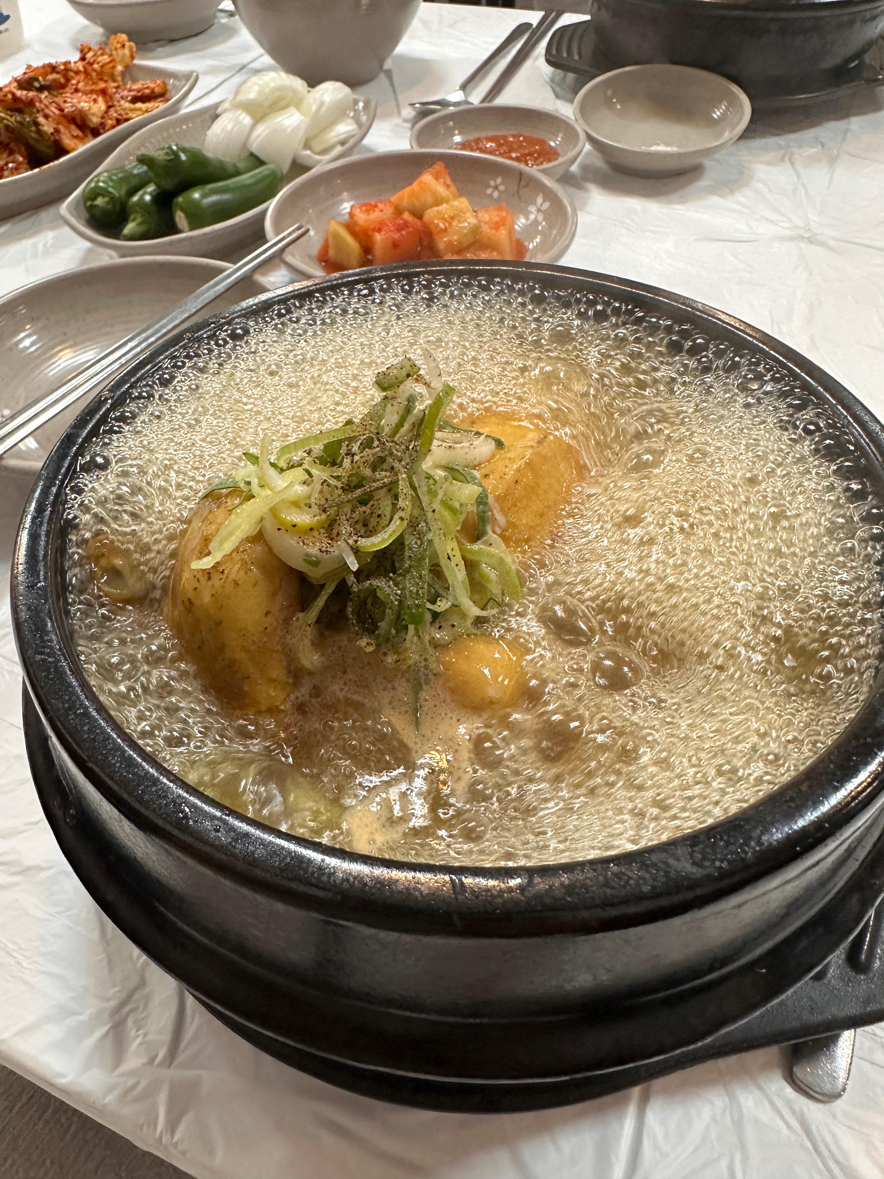저희는 대표 메뉴인 상황삼계탕을 주문했습니다. 주문 후 약 10분이 지나 뜨끈한 뚝배기에 담긴 상황삼계탕이 나왔습니다. 뚝배기 뚜껑을 여는 순간, 구수하고 진한 상황버섯 향이 퍼졌고, 국물은 맑고 깊은 갈색을 띠고 있었습니다.