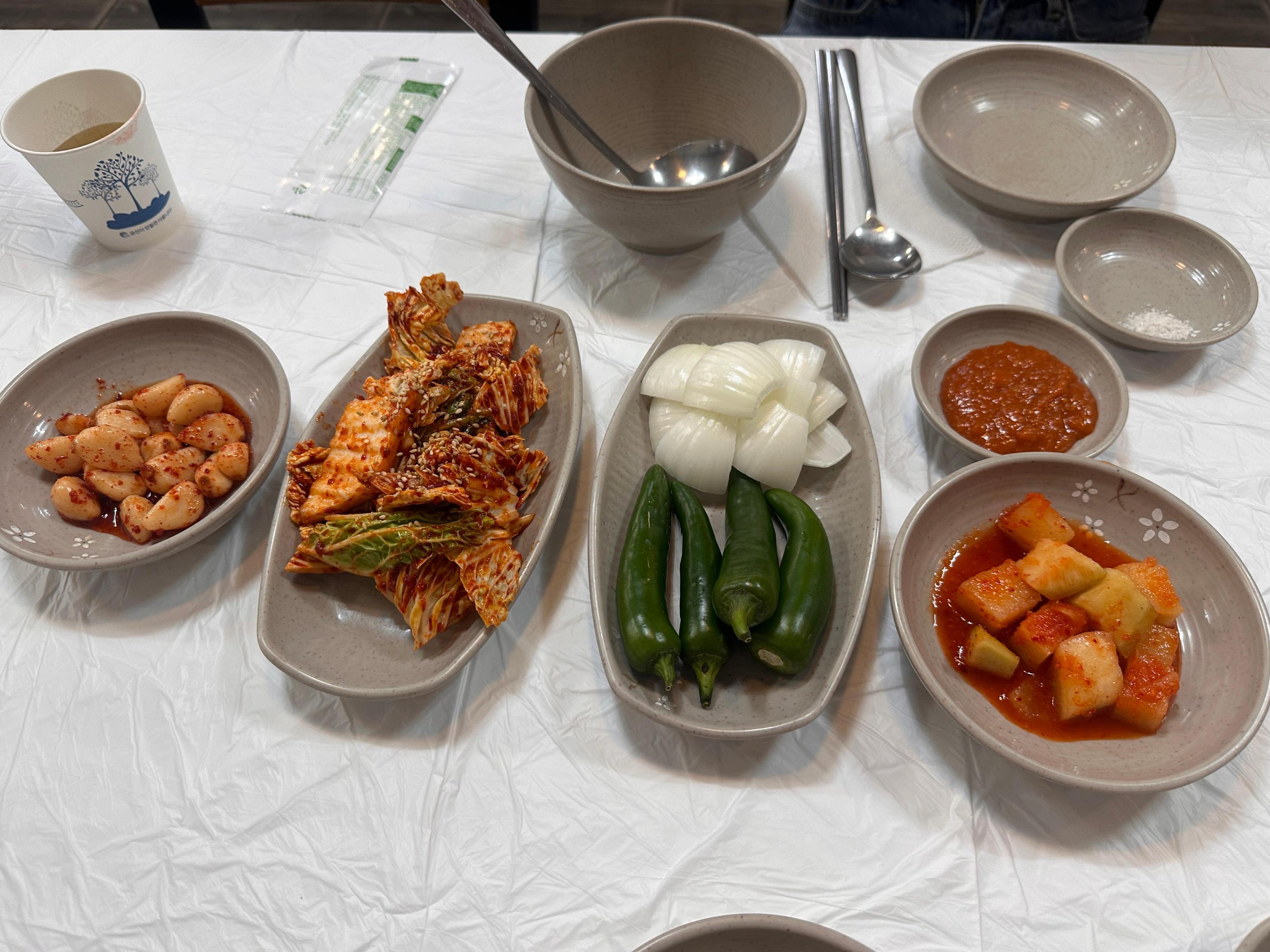 함께 제공된 부추무침은 부드러운 닭고기와 아주 잘 어울렸습니다. 부추 특유의 향긋함과 살짝 매콤한 맛이 삼계탕 국물과 절묘하게 조화를 이뤘습니다. 중간중간 깍두기와 김치를 곁들이니 느끼함 없이 끝까지 깔끔하게 먹을 수 있었습니다.