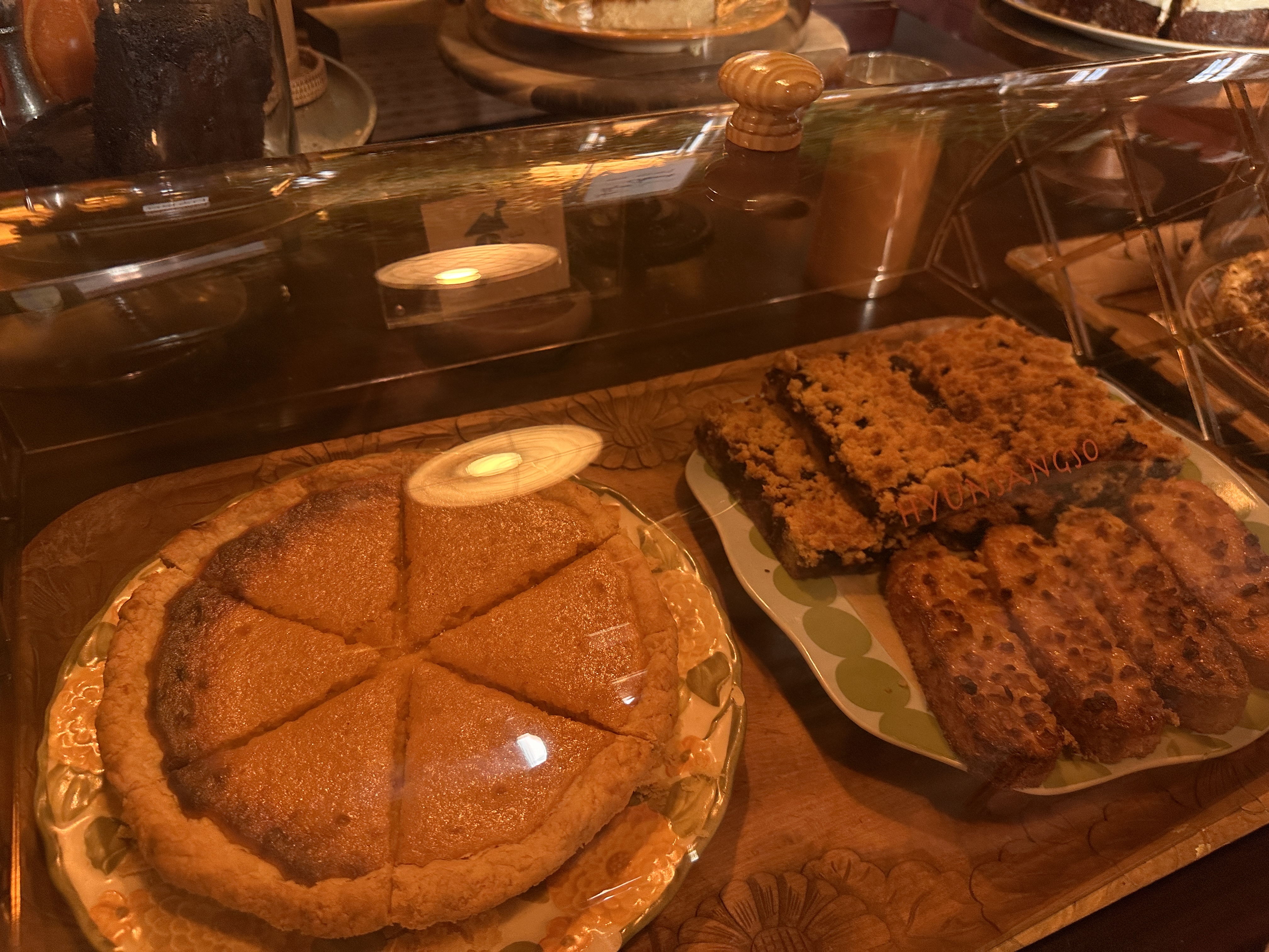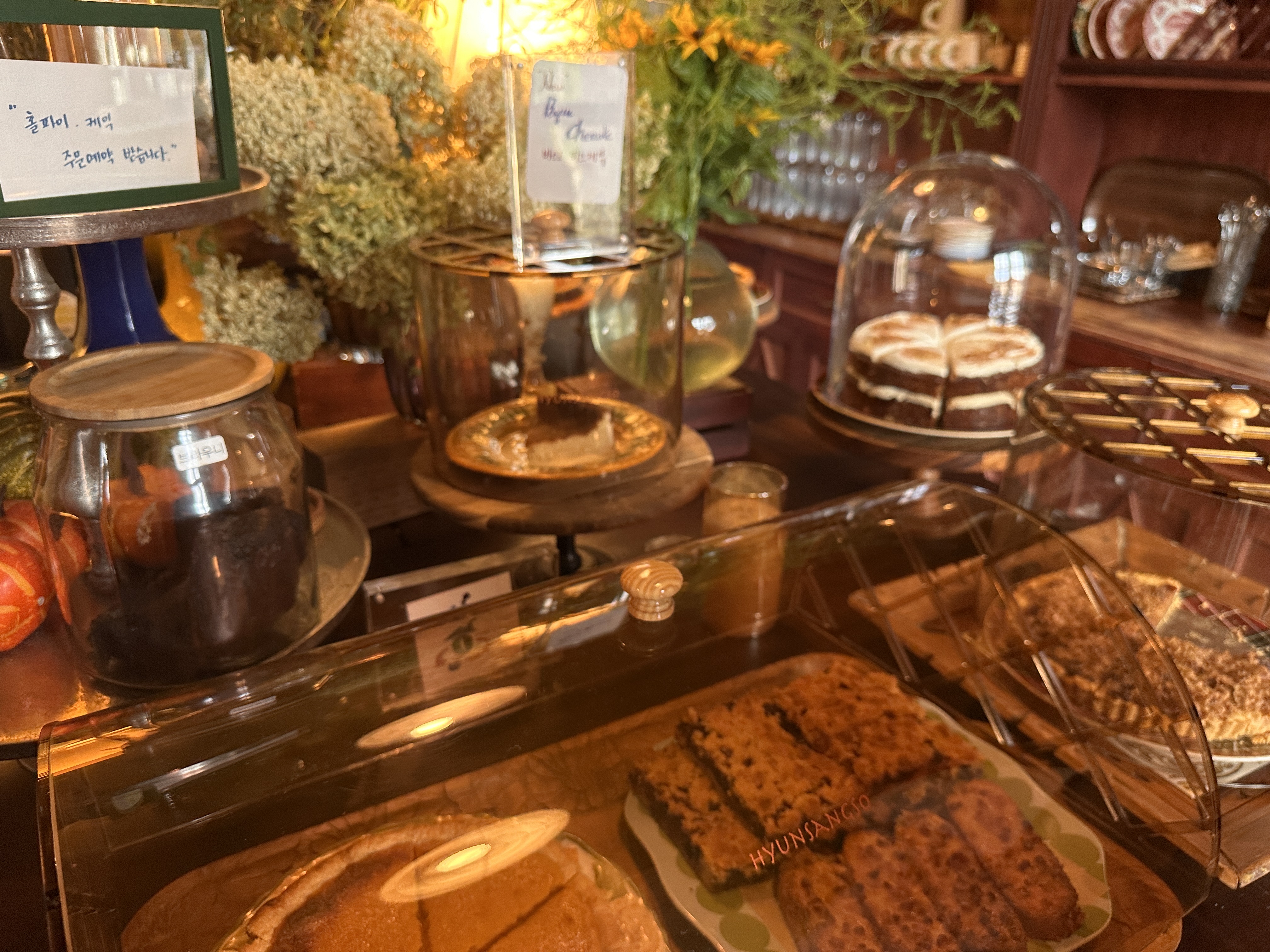 디저트 라인업에서는 케이크와 파이가 특히 눈에 띄었는데, 제가 그날 고른 건 ‘단호박파이’였습니다. 개인적으로 단호박을 좋아하기도 하지만, 이곳에서 직접 만들어낸다고 해서 호기심이 생겼죠. 그리고 역시 SNS에서 “단호박파이는 꼭 먹어야 한다”는 평이 자주 언급되어 있었거든요. 다양한 맛을 시도해보고 싶었으나 한 번에 여러 조각을 먹기엔 배가 부를 것 같아, 일행과 메뉴를 나눠먹기로 했습니다.