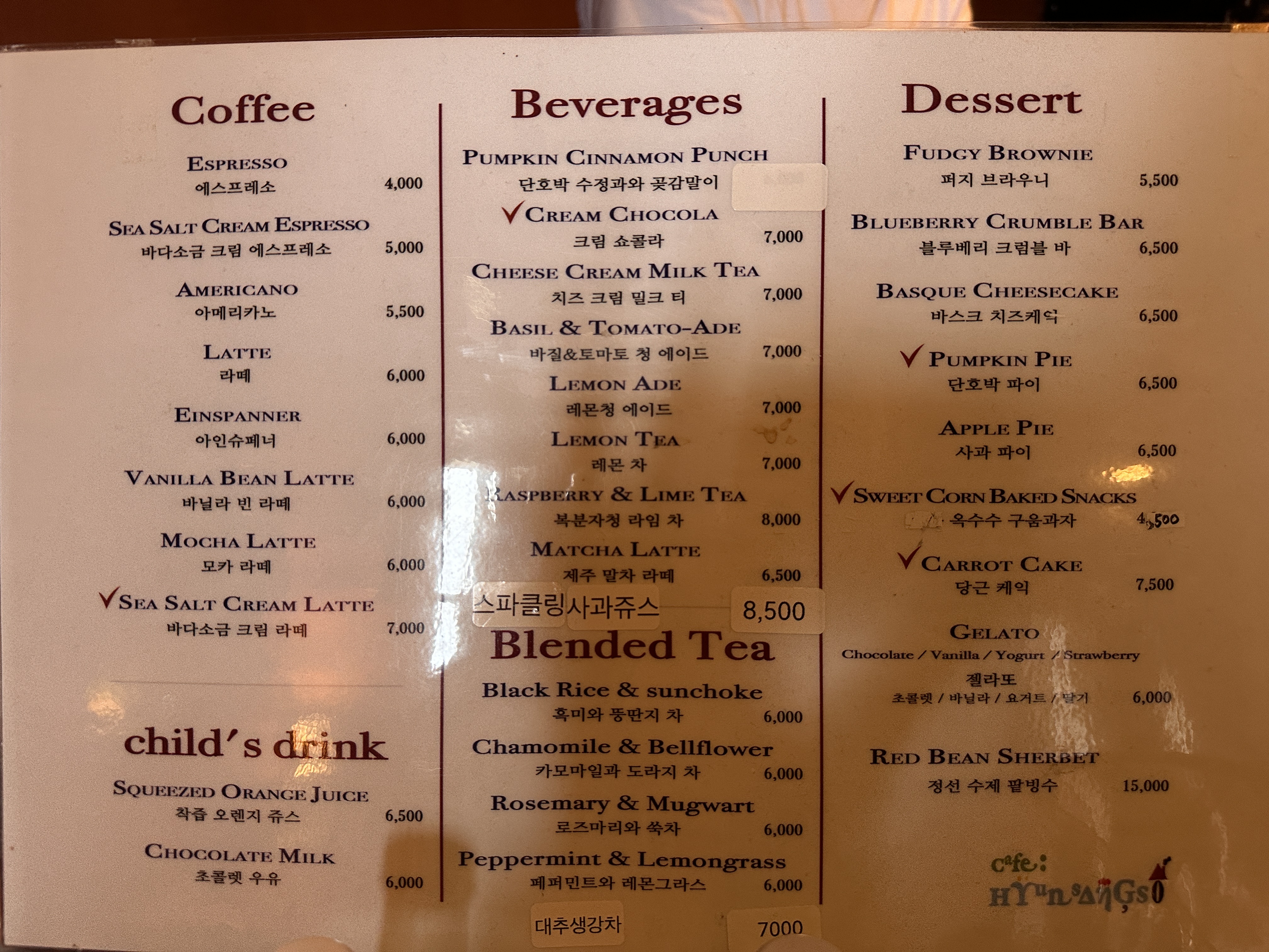 현상소는 커피와 차, 그리고 각종 디저트류가 주 메뉴로 보였어요. 직접 로스팅한 원두를 사용한다는 점이 가장 인상적이었는데, 손님들이 원하는 원두 취향에 맞춰 바리스타가 간단히 설명도 해준다고 들었습니다. 저는 평소 아메리카노를 자주 마시지만, 라테나 플랫화이트 같은 메뉴들도 있어서 선택 폭이 제법 넓었습니다. 차 종류도 허브티, 과일차 등 다양했는데, 날이 더워지면 아이스음료나 에이드 종류를 찾는 손님이 많다고 해요.