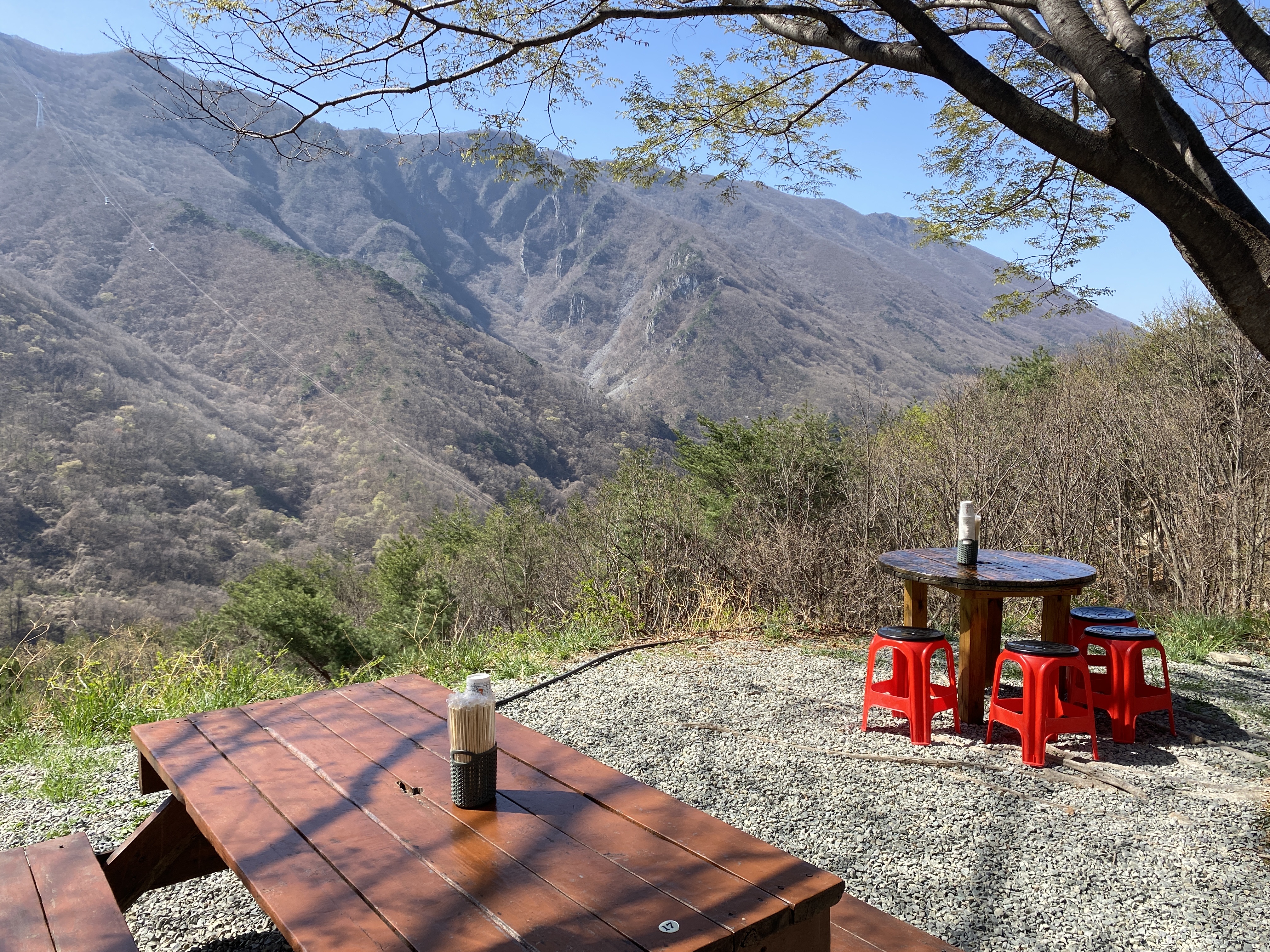 주문 후 한참 정도 기다렸습니다. 사람이 많으면 다소 대기시간이 길어질 수 있는데, 다행히 날씨가 좋아 바깥 경치를 구경하며 시간을 보낼 수 있었어요. 야외 테이블에 앉으니 주변 산 능선이 훤히 보이고, 푸른 숲의 냄새가 코끝을 스치더군요. 대구 근교 야외식당이라 해도, 이 정도 자연 풍광을 누리긴 흔치 않다는 생각이 들었습니다.