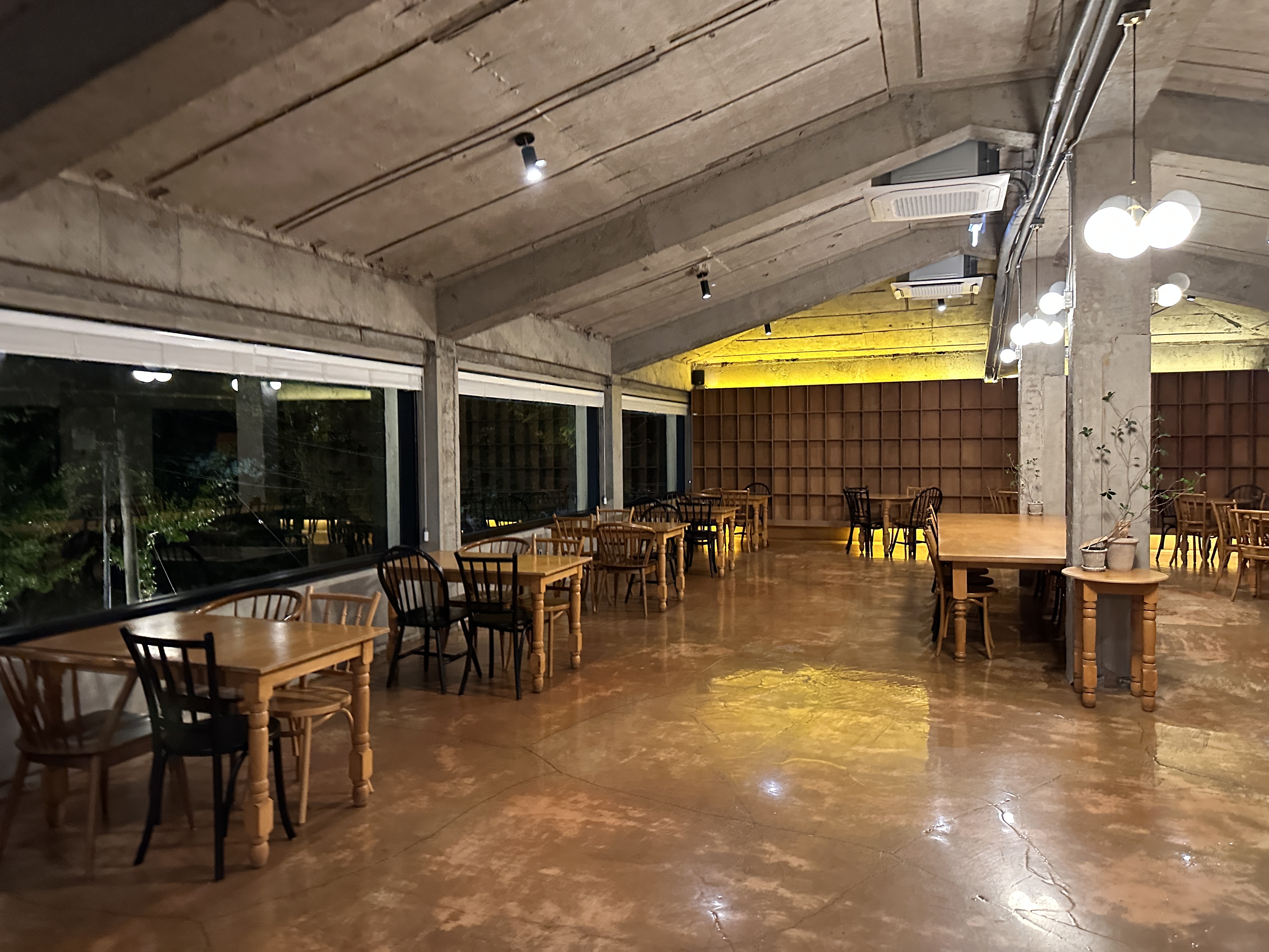 그렇게 에스프레소를 거의 다 마실 때쯤, 가게에서는 잔잔한 음악이 조금 더 느린 템포로 흘러나왔습니다. 밤도 한층 깊어졌고, 손님들도 하나둘씩 자리를 뜨는 모습이 보이더군요. 저 역시 너무 늦지 않게 귀가해야 했기에, 마무리하기 전 사진을 몇 장 찍어 두었습니다. 낮에는 어땠을지 모르지만, 밤에는 이 은은한 조명이 카페를 더욱 매력적으로 보이게 만들었어요.