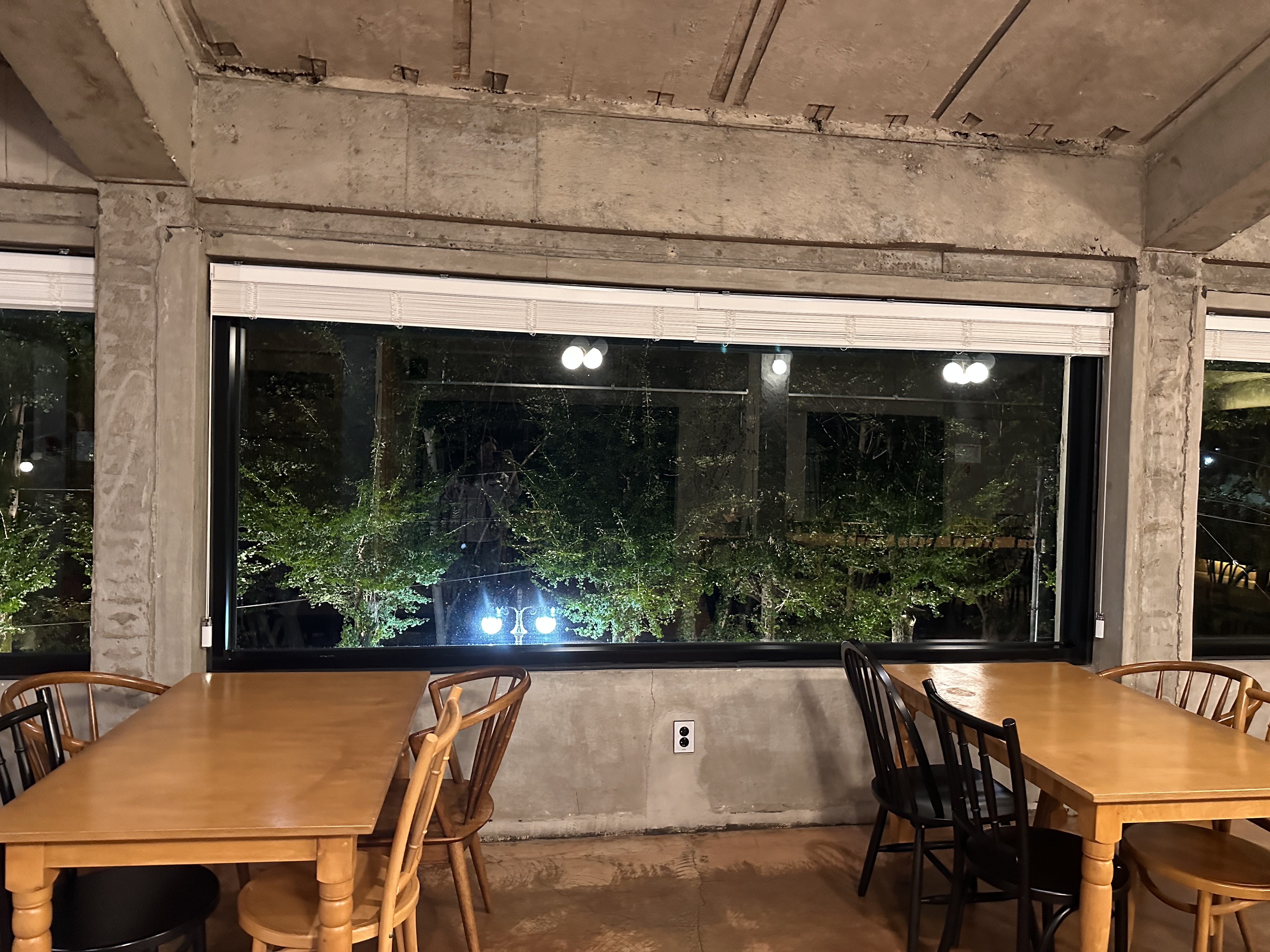 그렇게 에스프레소를 거의 다 마실 때쯤, 가게에서는 잔잔한 음악이 조금 더 느린 템포로 흘러나왔습니다. 밤도 한층 깊어졌고, 손님들도 하나둘씩 자리를 뜨는 모습이 보이더군요. 저 역시 너무 늦지 않게 귀가해야 했기에, 마무리하기 전 사진을 몇 장 찍어 두었습니다. 낮에는 어땠을지 모르지만, 밤에는 이 은은한 조명이 카페를 더욱 매력적으로 보이게 만들었어요.