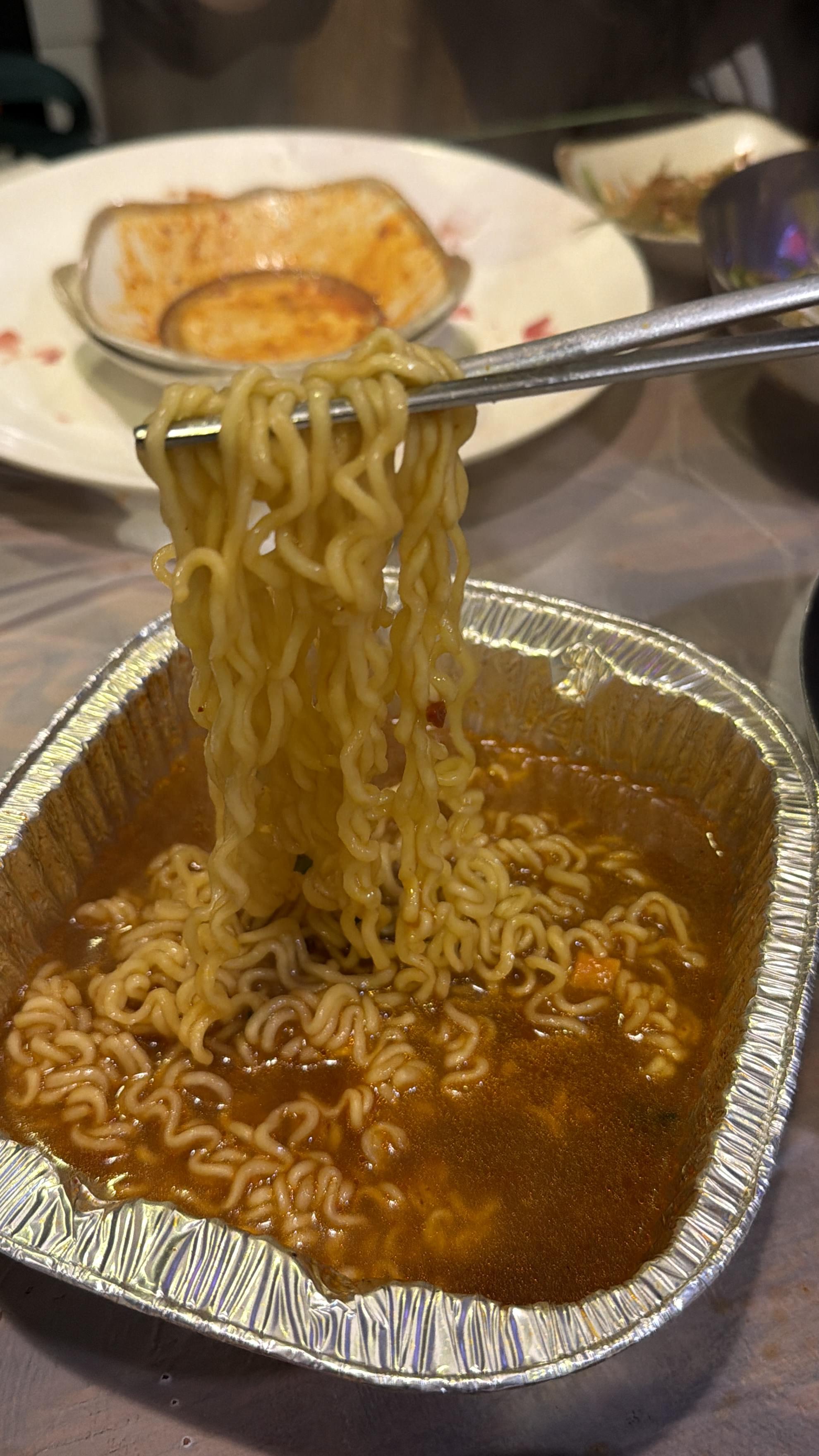 직원분이 볶아주신 볶음밥은 고슬고슬하게 잘 볶아져 있었고, 바닥에 살짝 눌어붙은 부분까지 긁어 먹는 재미가 있었습니다. 여기에 라면까지 더하니 완벽한 탄수화물 마무리 코스가 완성됐습니다. 얼큰한 국물이 고기의 느끼함을 정리해 주면서 속이 다시 한번 정돈되는 느낌이었어요.