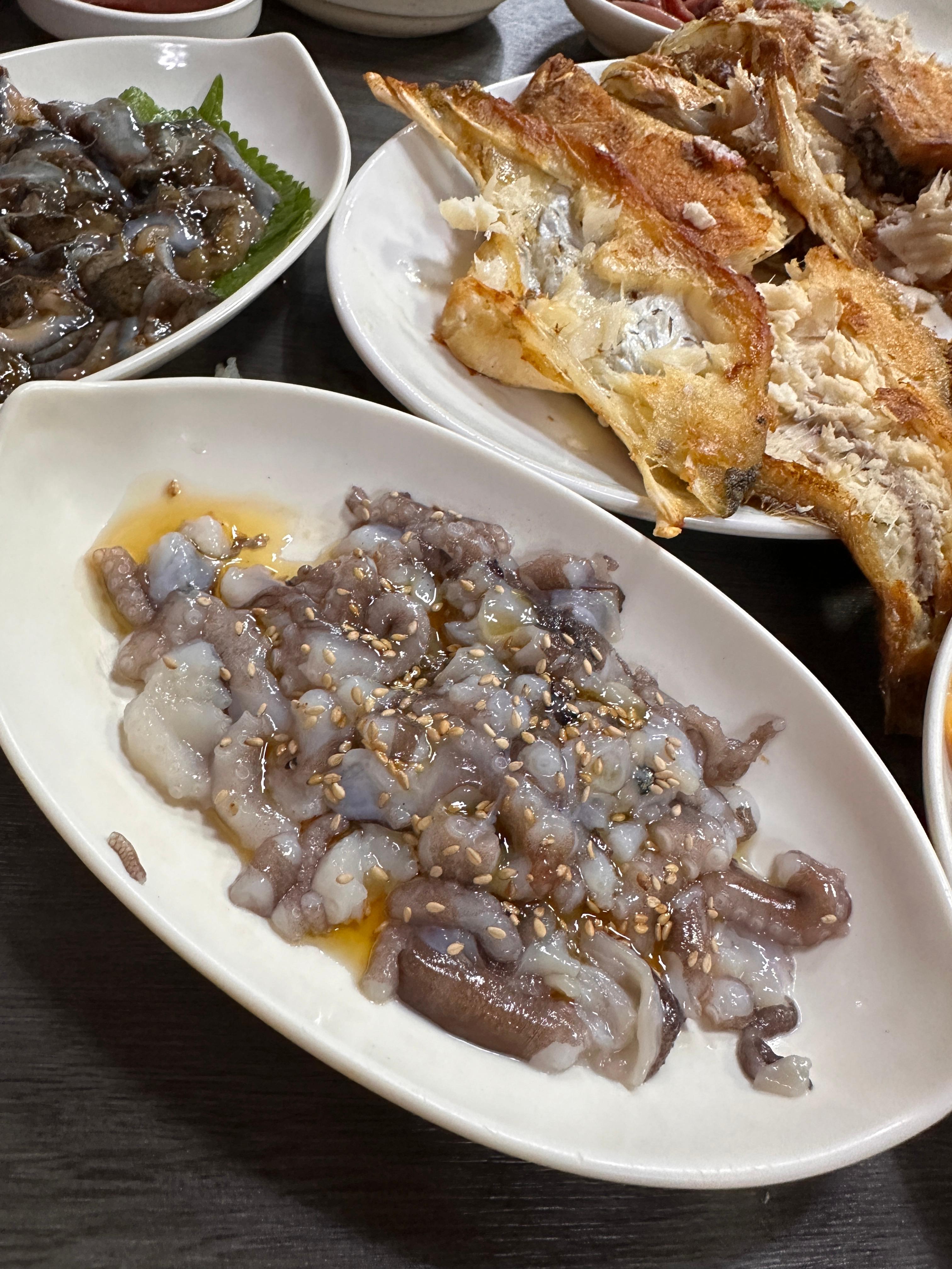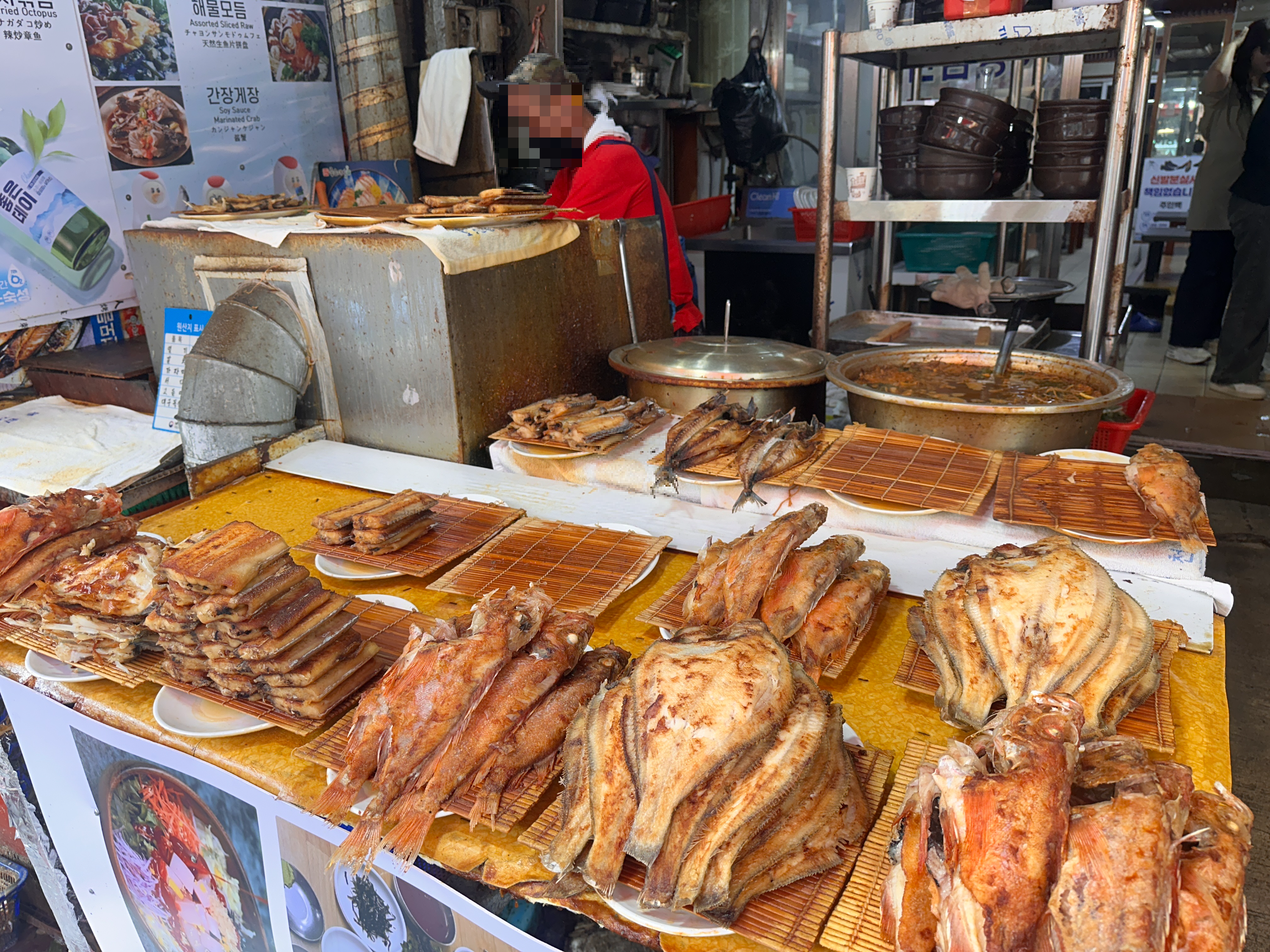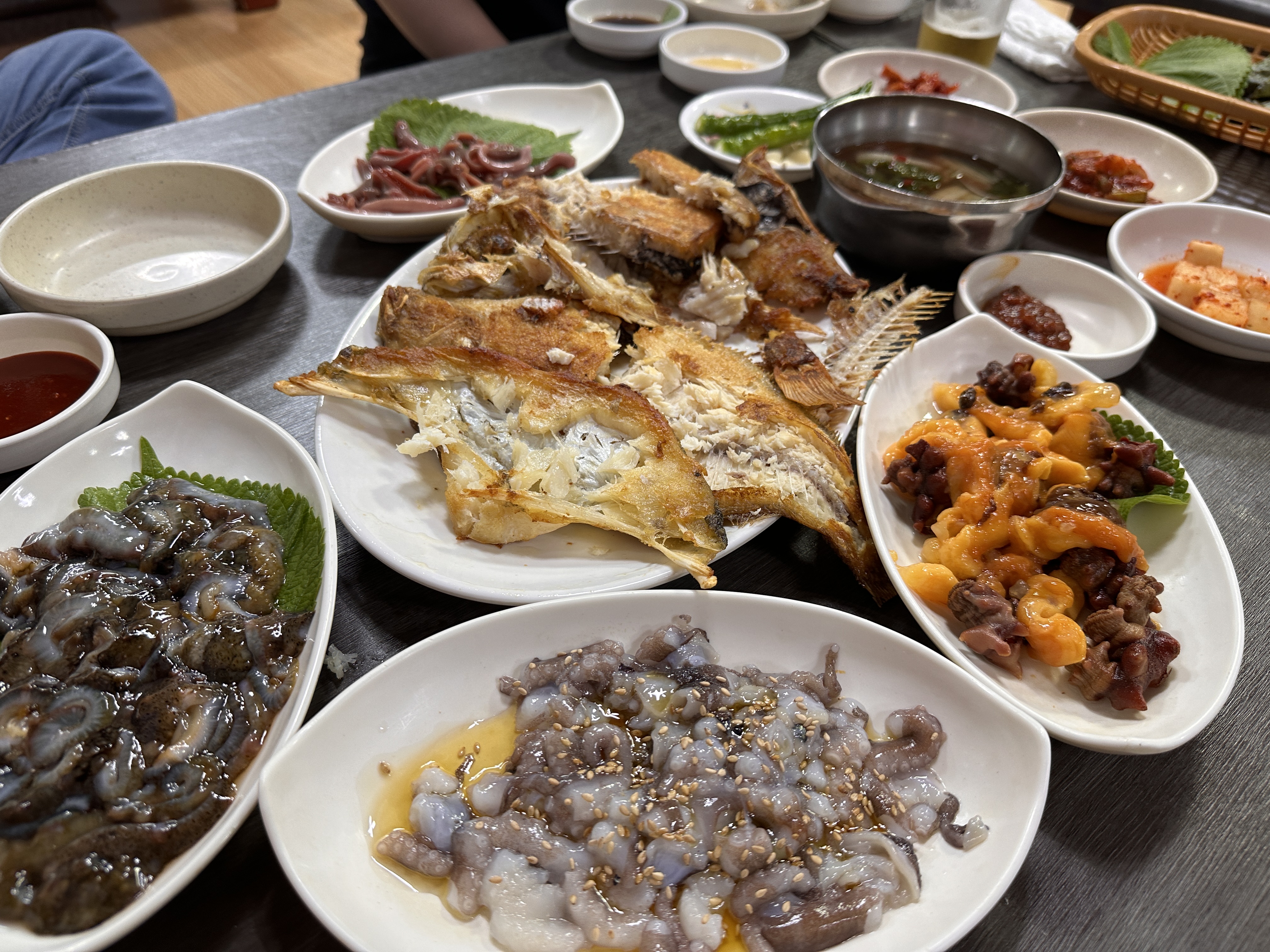제가 들른 시간대는 오후 1시쯤이었는데, 이미 꽤 많은 분들이 꼼장어와 해산물 모둠을 드시며 낮술을 즐기고 있었습니다. 저희도 그런 분위기에 빠르게 적응해 자연스럽게 소주잔을 기울였고, 시간 가는 줄도 모르고 신나게 이야기를 나눴어요. 역시나 이곳은 “부산” 하면 빼놓을 수 없는 명소답게 식도락 여행에 딱이라는 생각이 들었습니다.