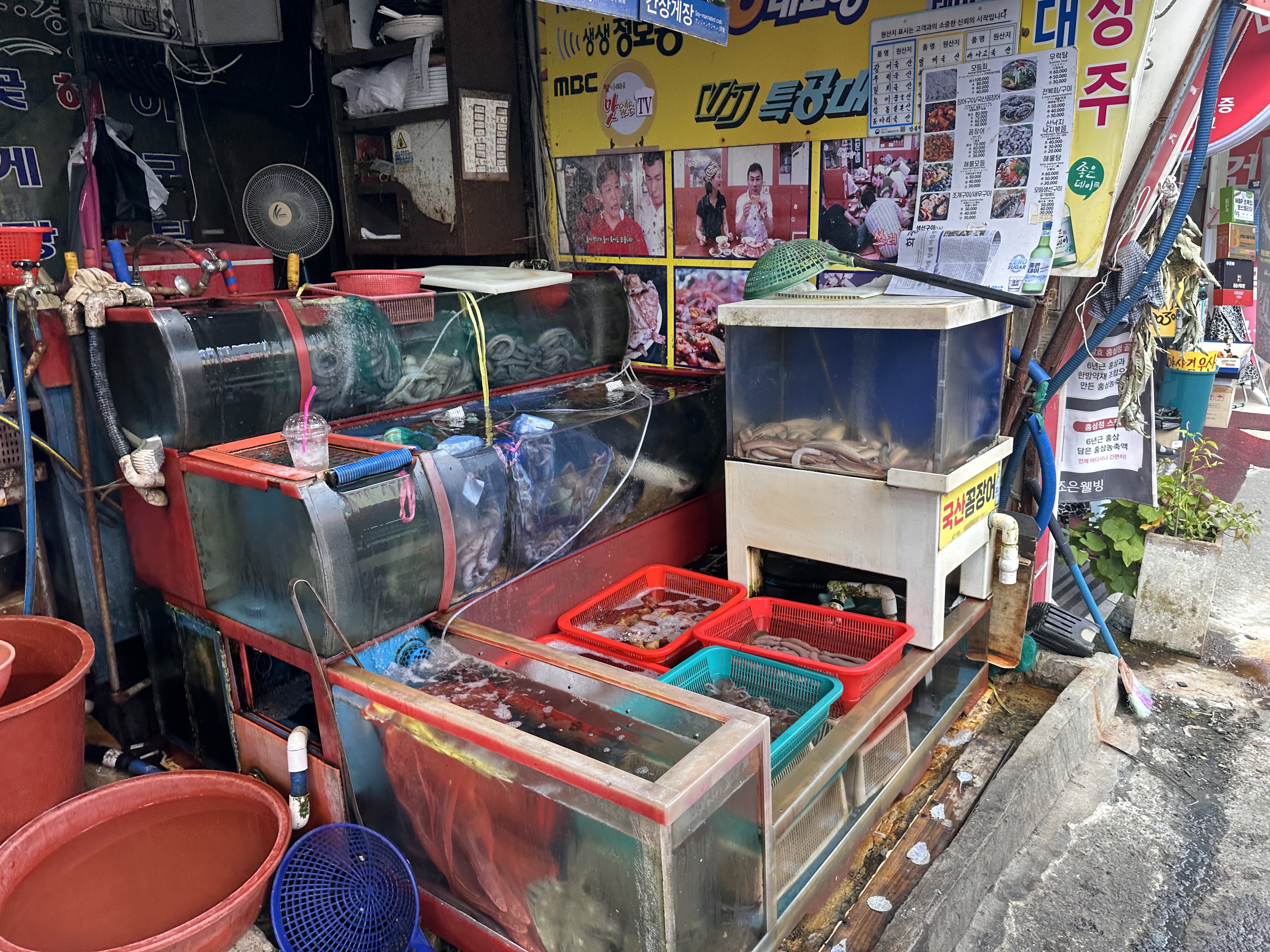 이번에 제가 방문한 이유 중 하나는 바로 꼼장어였습니다. 자갈치시장에 오면 회만 떠올리기 쉽지만, 꼼장어가 또 이 지역의 별미잖아요. 낙곱새나 전복, 대게 등도 유명하지만, 이날은 친구들과 “꼼장어에 소주 한 잔”이라는 로망을 실현하기 위해 경북대구횟집으로 향했죠.