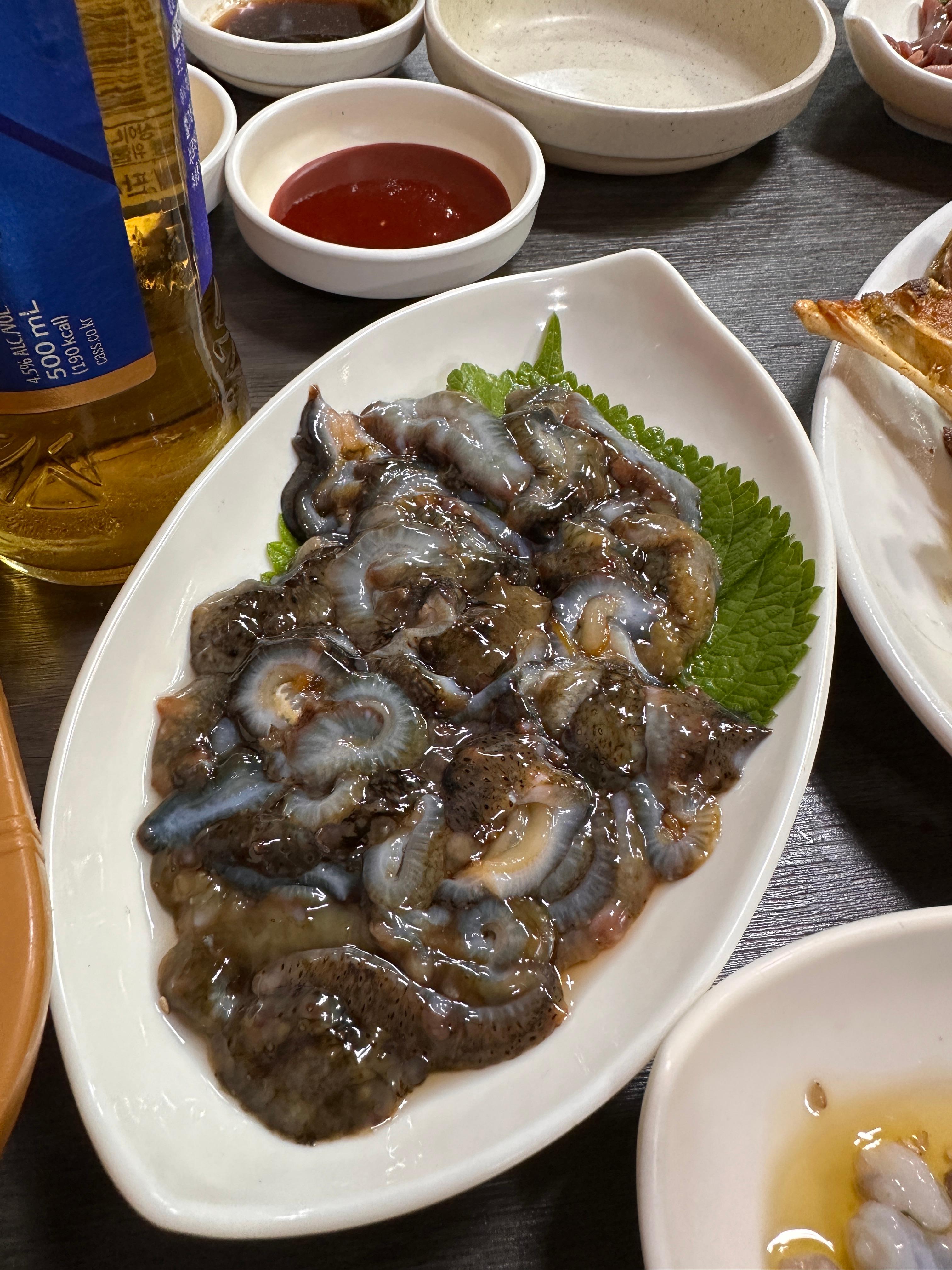 일단 제일 먼저 꼽고 싶은 장점은 음식의 신선도예요. “시장에서 바로 공급받아 그런지, 회도 꼼장어도 해산물도 정말 싱싱하다.”라는 게 제 첫인상이었습니다. 그리고 낮술을 즐기러 갔는데도 직원분들이 전혀 불편함 없이 친절하게 응대해주셔서 기분 좋았습니다.