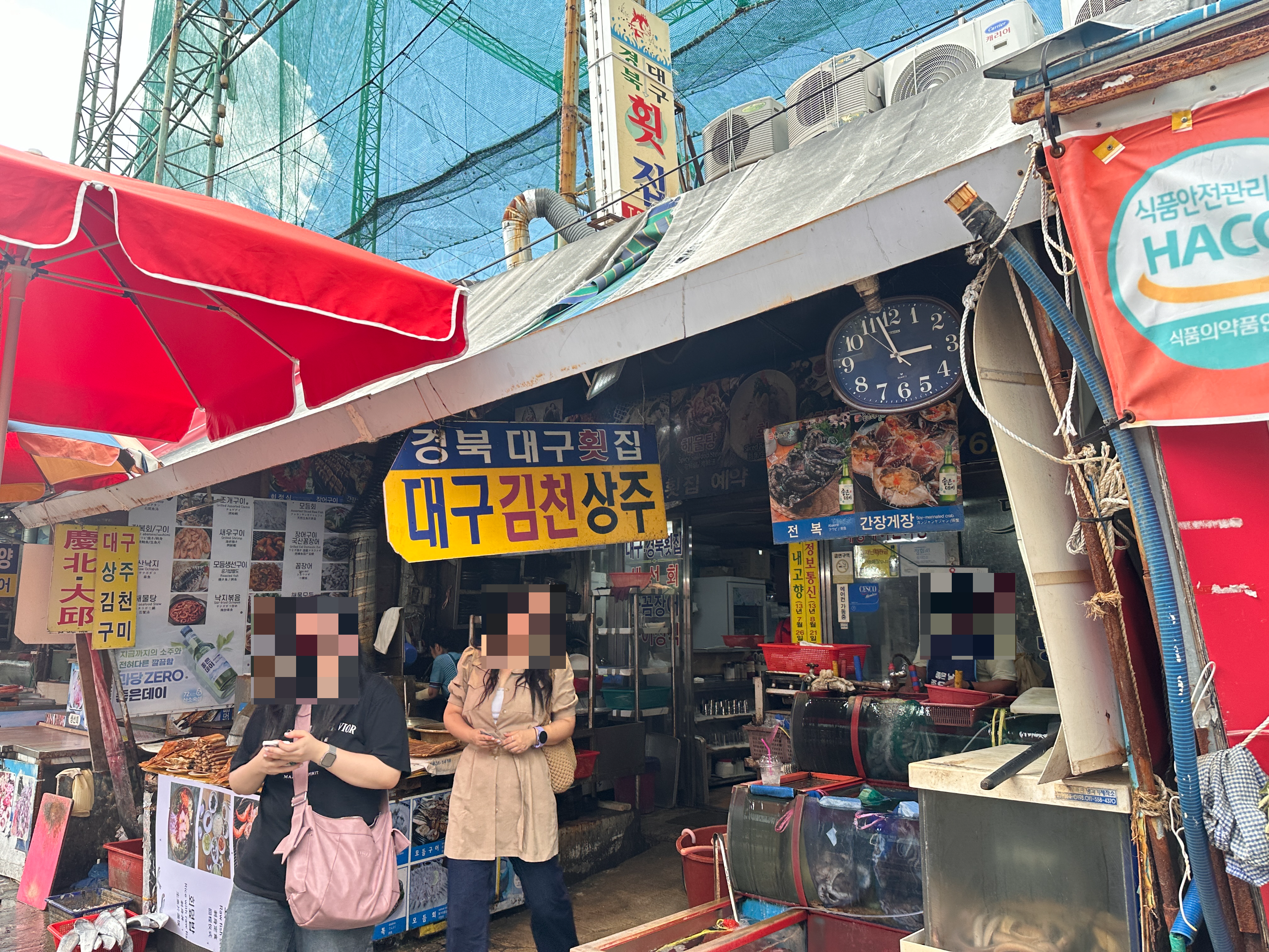 마지막으로, 부산 자갈치시장 맛집을 찾으려면 어느 정도 시장 골목을 거쳐야 하는데, 초행길이라면 조금 헤맬 수도 있습니다. 지도로 확인하는 것도 좋고, 가게 앞쪽에 크게 간판이 걸려 있으니 잘 찾아보면 금방 발견할 수 있어요. 워낙 식당이 많아서 순간적으로 눈에 안 들어올 수 있지만, “경북대구횟집”이라는 간판만 잘 찾으면 됩니다.