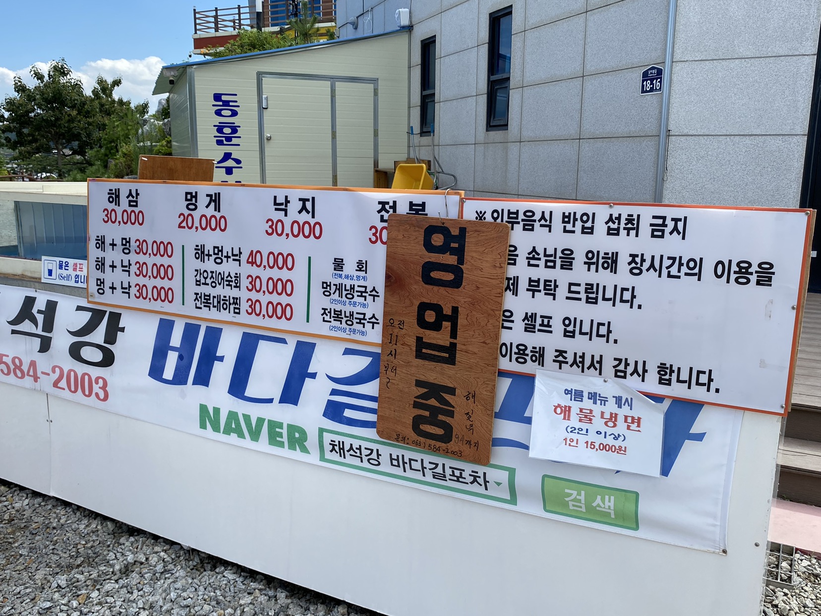 채석강 해안에서 차로 5분 남짓 되는 곳에 자리해 있고, 내비게이션에 ‘채석강바다길식당’을 검색하면 무난히 도착할 수 있었습니다. 가게 앞에 주차장이 마련돼 있어, 주말 점심시간대라도 크게 불편함은 없었습니다. 다만 여름 휴가철처럼 극성수기에는 사람이 몰릴 수 있으니 조금 서두르는 편이 좋겠죠.
