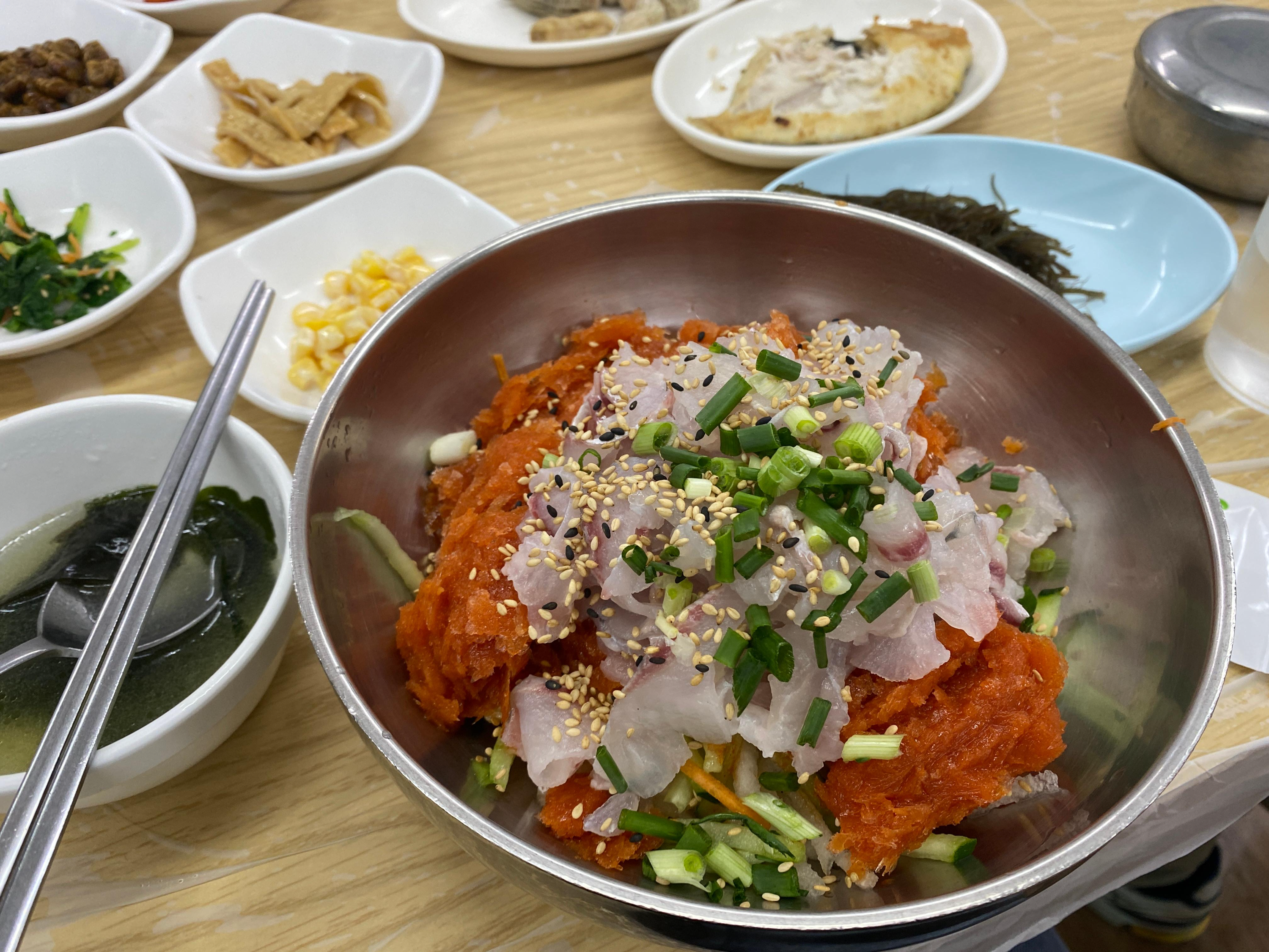이처럼 곧바로 잡힌 해산물로 만든 물회라, 신선함이 살아 있는 게 가장 큰 매력이라 생각돼요. 다른 도시에서 물회를 먹어도 맛있을 때가 많지만, 그래도 기장 물회 맛집이라면 회의 신선도는 기본으로 기대하게 되잖아요. 확실히 실망시키지 않는 수준이었습니다.
