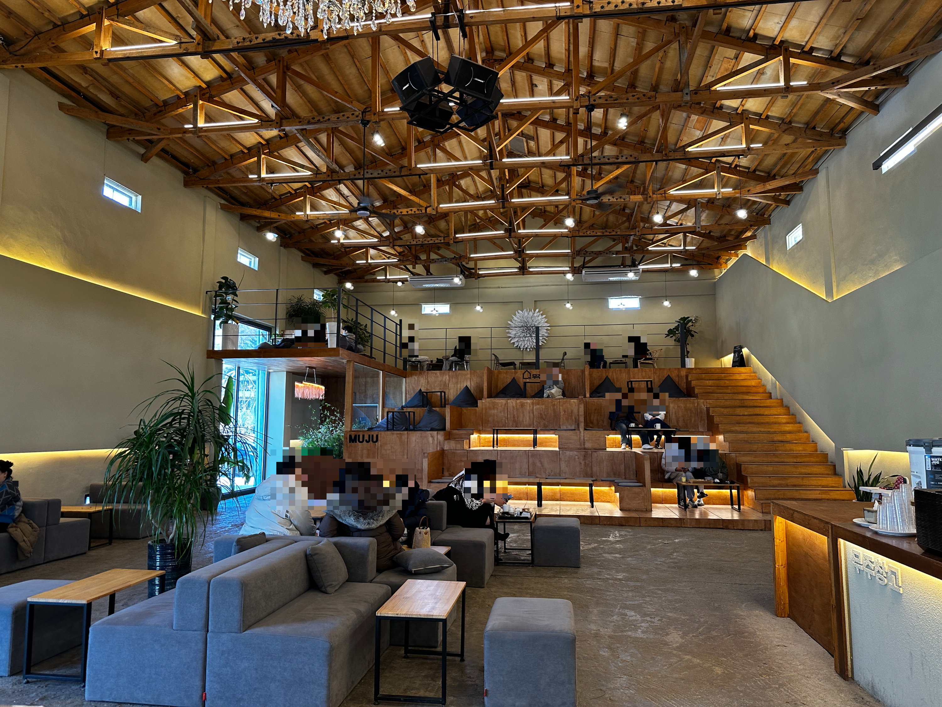 산행을 마치고 나면 식사나 차 한 잔을 위한 장소를 찾으실 텐데, 이번에 제가 택한 곳은 무주 시내 근처에 있는 무주창고였습니다. “무주 카페(2)” 중에서도 인테리어가 독특하다는 후기를 많이 봤거든요. 오래된 창고 건물을 카페로 개조한 느낌이 물씬 풍기는데, 이색적인 공간이 시선을 사로잡았습니다.