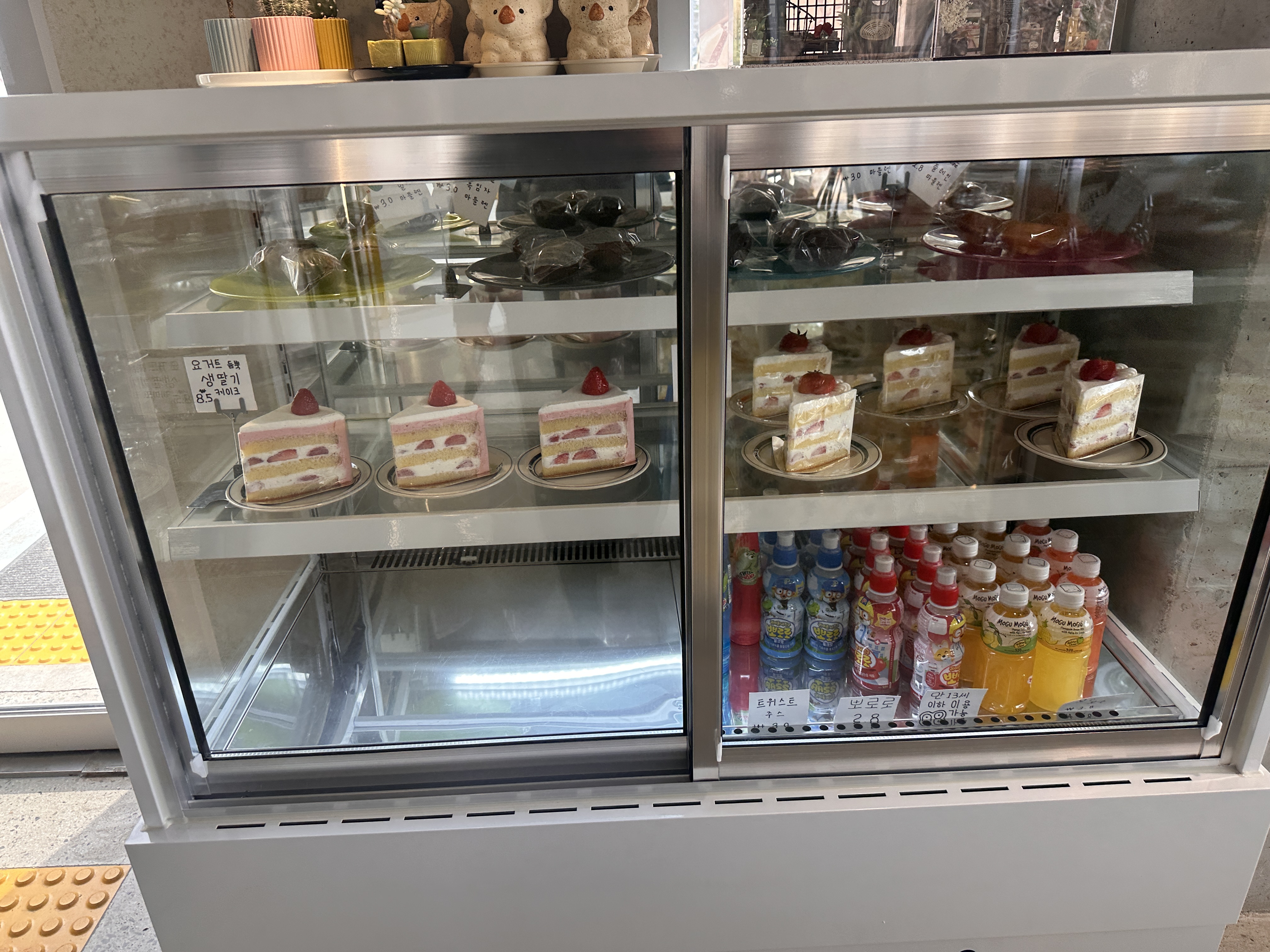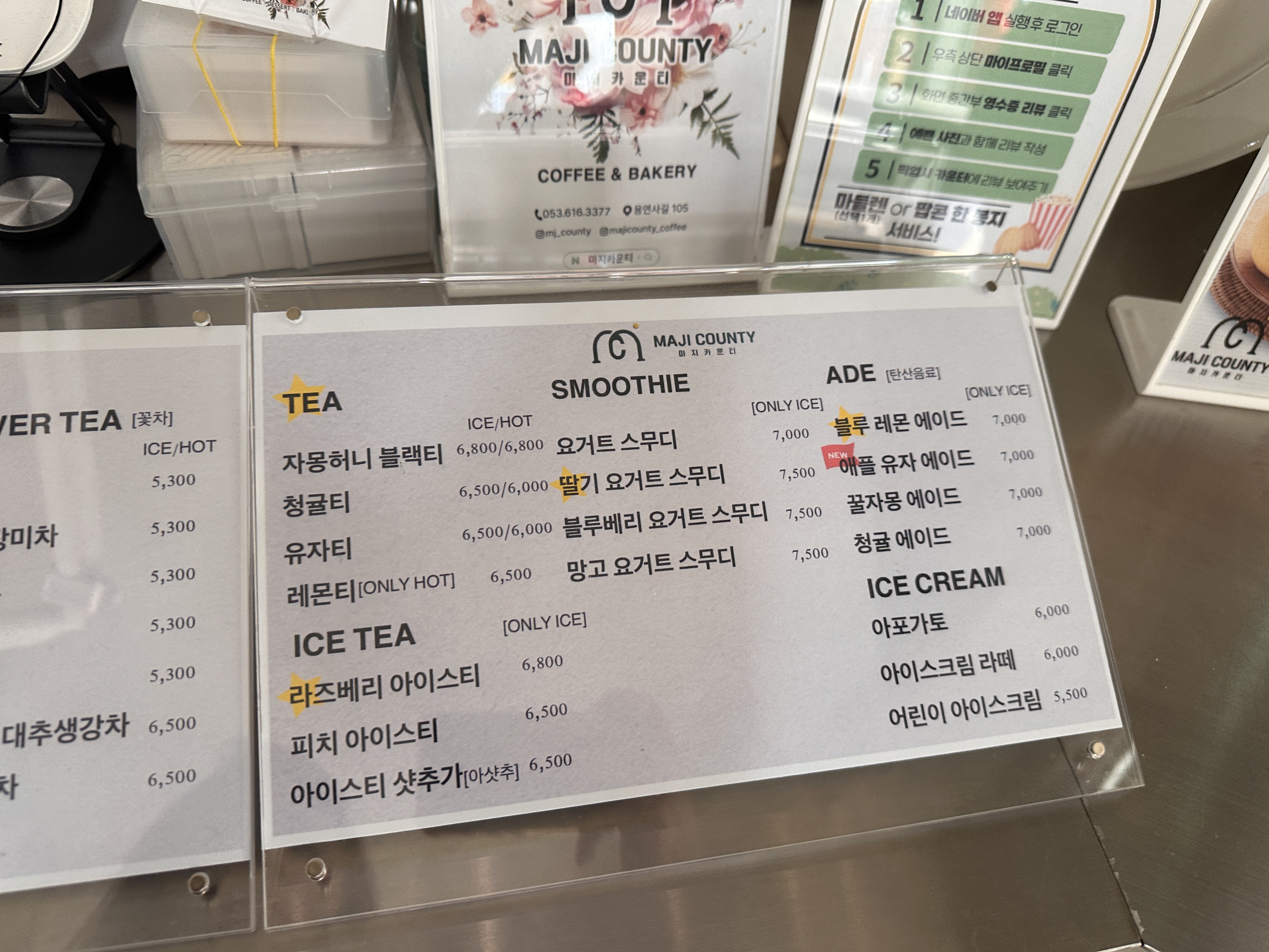 이곳 마지카운티에 들어서면, 커피·차·에이드·디저트 등 다양한 메뉴가 눈길을 끕니다. 그중에서도 SNS 후기를 보니, “아메리카노 맛이 깔끔하다”, “딸기케이크가 달콤하고 신선하다”는 평이 많았어요. 저 역시 땀을 좀 흘린 뒤라 시원한 음료가 땡겨 바로 아이스 아메리카노를 골랐고, 동행한 친구는 카페라떼와 고민하다가 결국 딸기케이크를 함께 주문해 나눠 먹기로 했습니다.