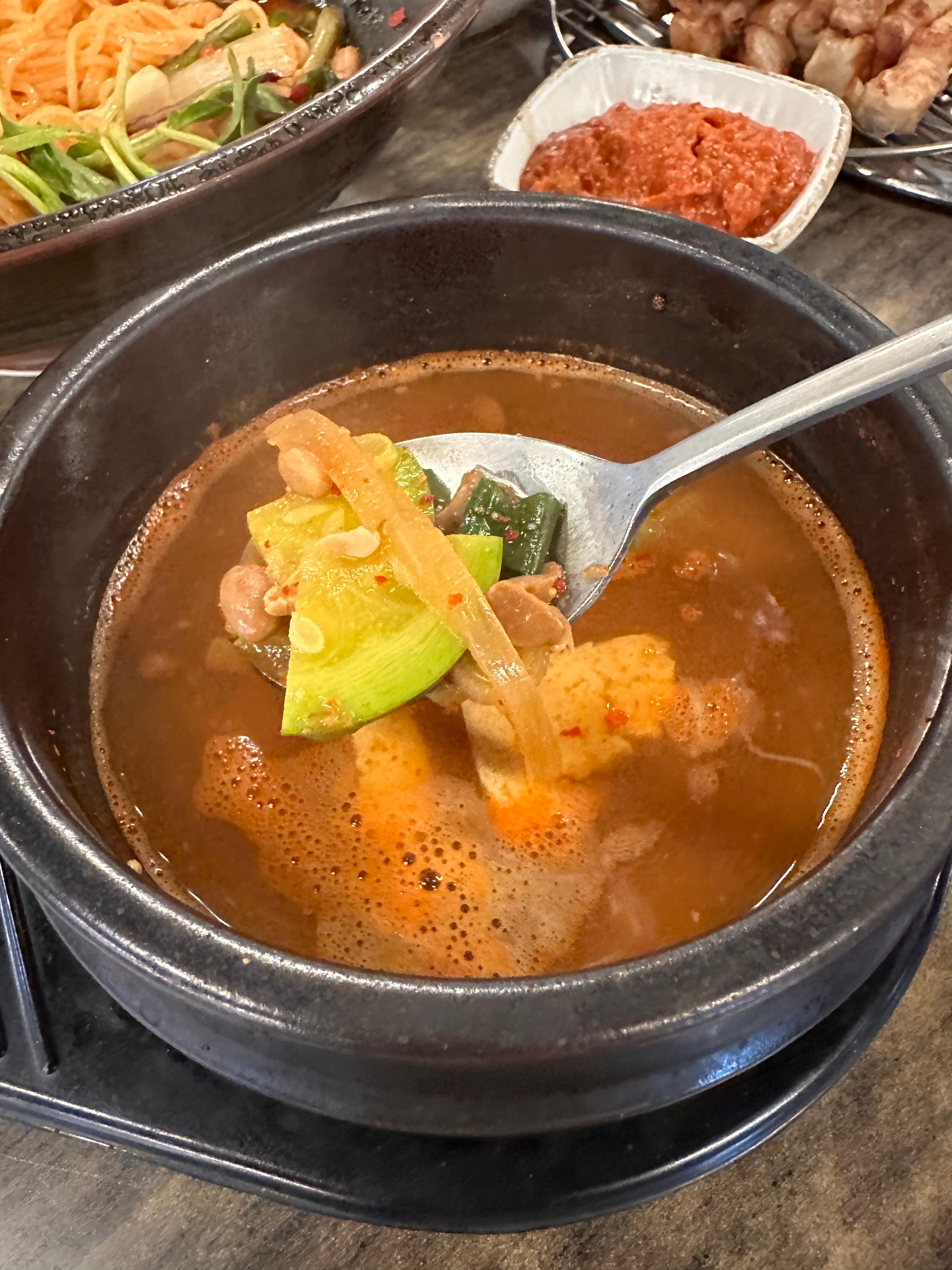 고기를 다 먹은 뒤에는 남은 열무국수 국물을 홀짝홀짝 마시면서 마무리했는데, 이게 또 은근 해장 비슷한 느낌이 나더라고요. 고기 먹고 과하게 배불러지면 속이 더부룩할 때가 있는데, 열무국수 덕분에 개운하게 끝낼 수 있었습니다. 다른 가게들에서 된장찌개나 냉면을 별도로 시켜 먹는 것과 달리, 여기서는 한 세트에 다 포함돼 있으니 편리하기도 하고요.