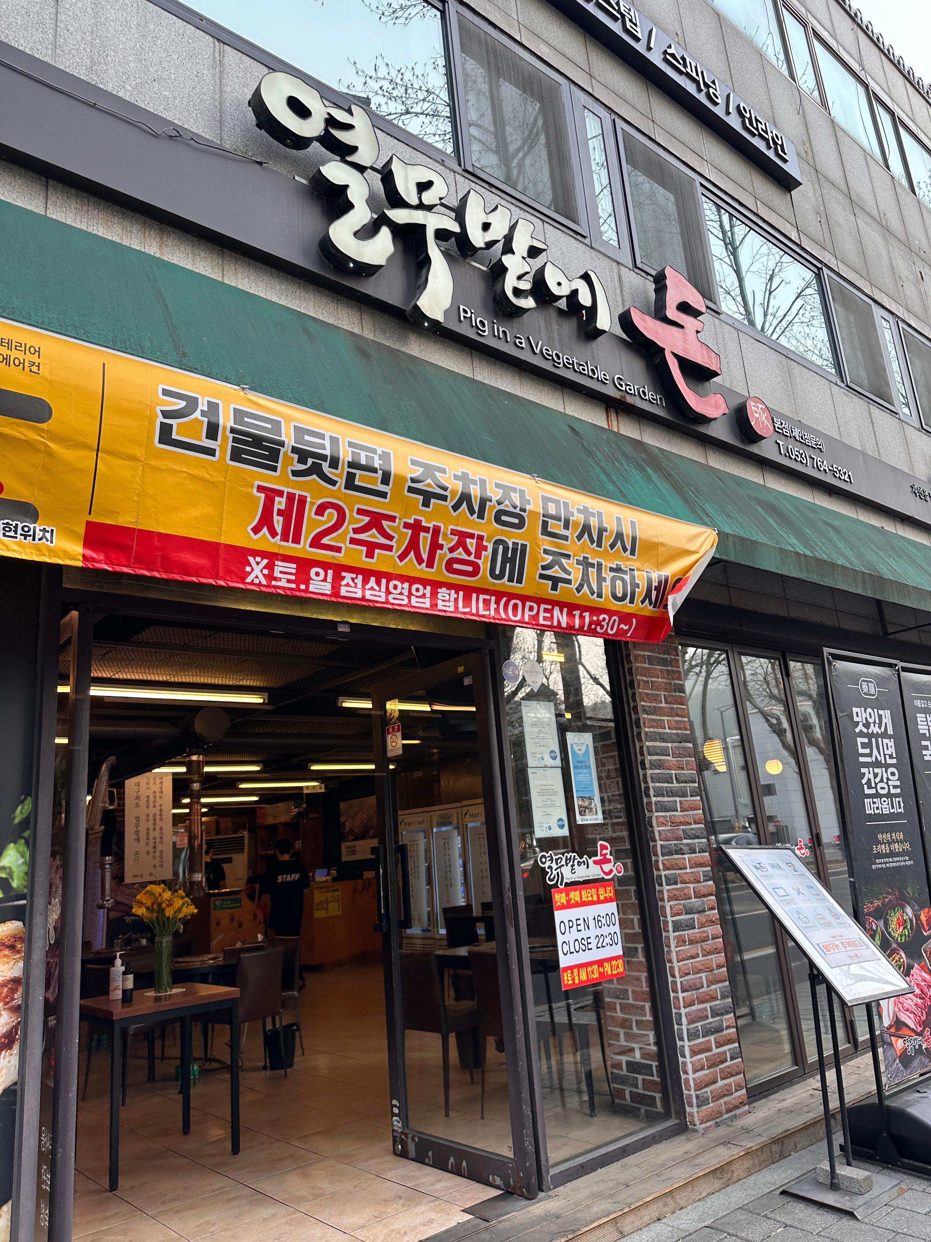 사실 저를 비롯해 가족들까지 차를 가져가는 경우가 많아서, 주차 걱정을 먼저 하게 돼요. 수성구 삼겹살 맛집을 방문해보신 분들은 아시겠지만, 수성구는 주말이나 저녁 시간대에 주차가 쉽지 않을 때가 많습니다. 다행히 열무밭에돈은 전용 주차장을 갖추고 있었고, 매장건물 뒷편 주차장 외에도 2주차장이 별도로 있어서 주차는 어렵지 않았습니다.