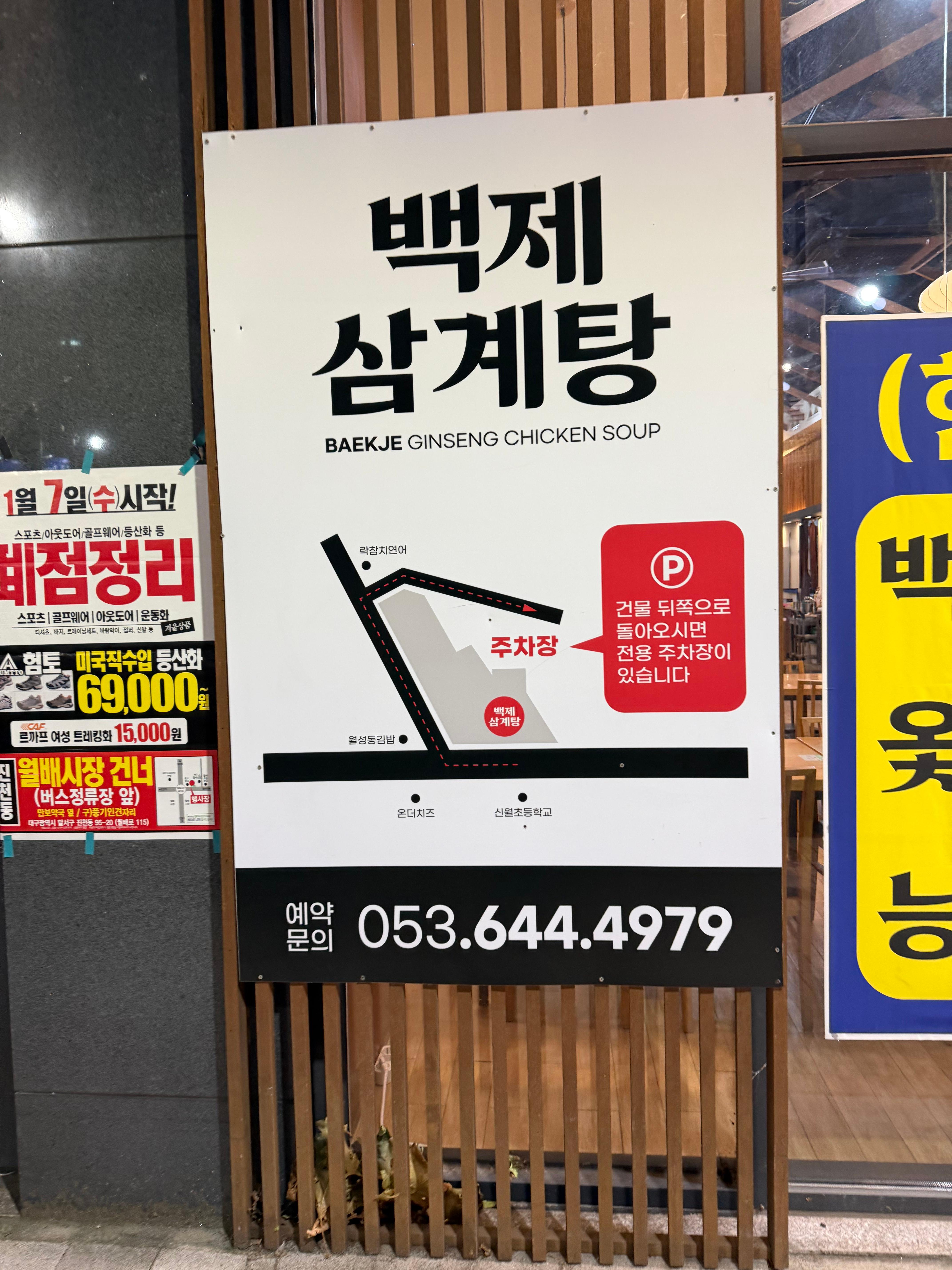백제삼계탕은 대구 달서구 월성동 중심 상권 인근에 위치해 있어 접근성이 좋은 편입니다. 차량으로 방문하기에 부담이 없고, 네비게이션에 상호명을 입력하면 어렵지 않게 도착할 수 있습니다.