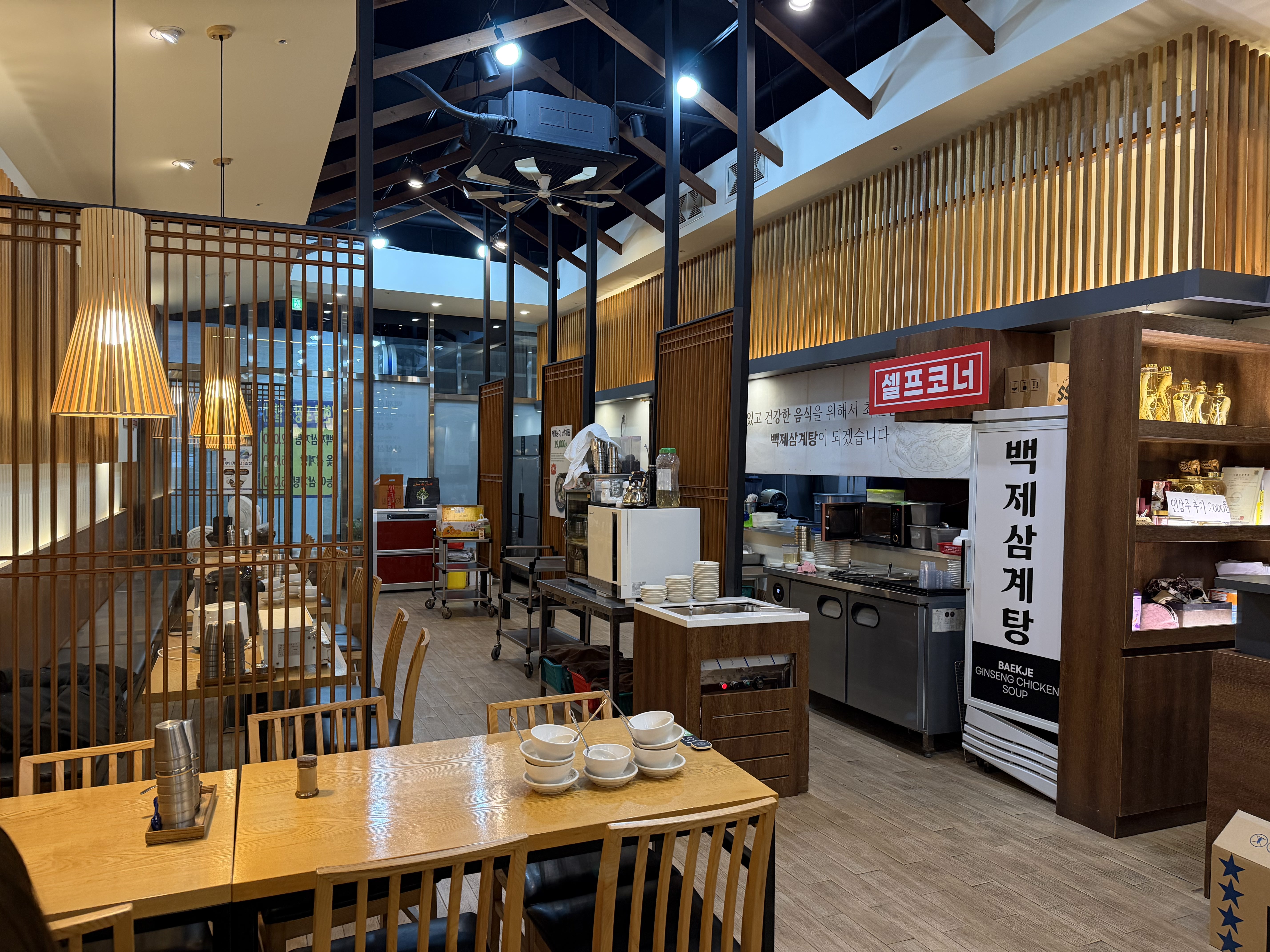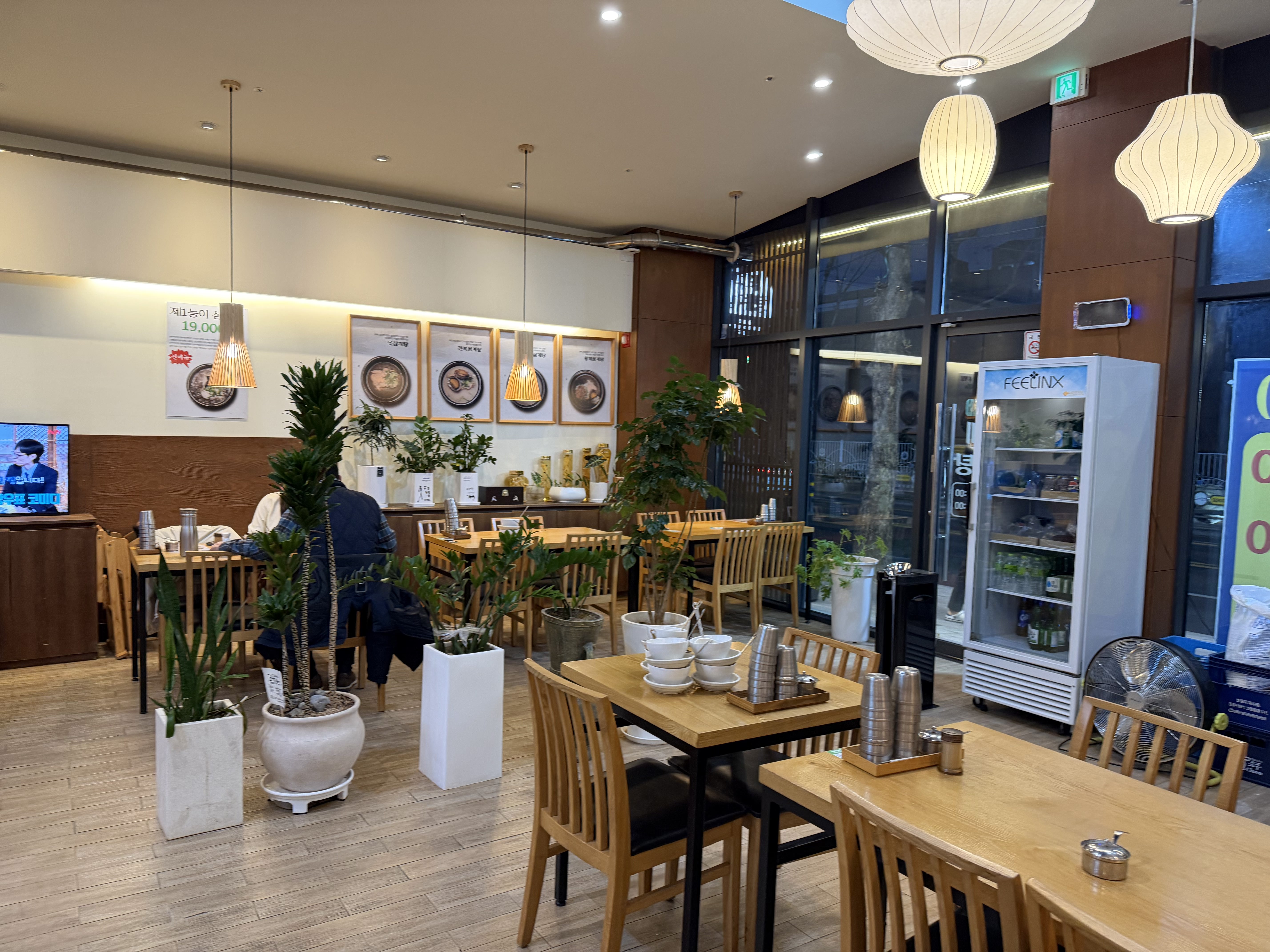 매장 외관은 한눈에 봐도 삼계탕 전문점이라는 느낌이 들 만큼 깔끔하고 단정했습니다. 간판도 눈에 잘 띄었고, 내부로 들어가니 넓은 홀 구조가 인상적이었습니다. 테이블 간 간격도 여유 있어 가족 단위 손님이나 어르신들과 함께 오기에도 편안해 보였습니다.