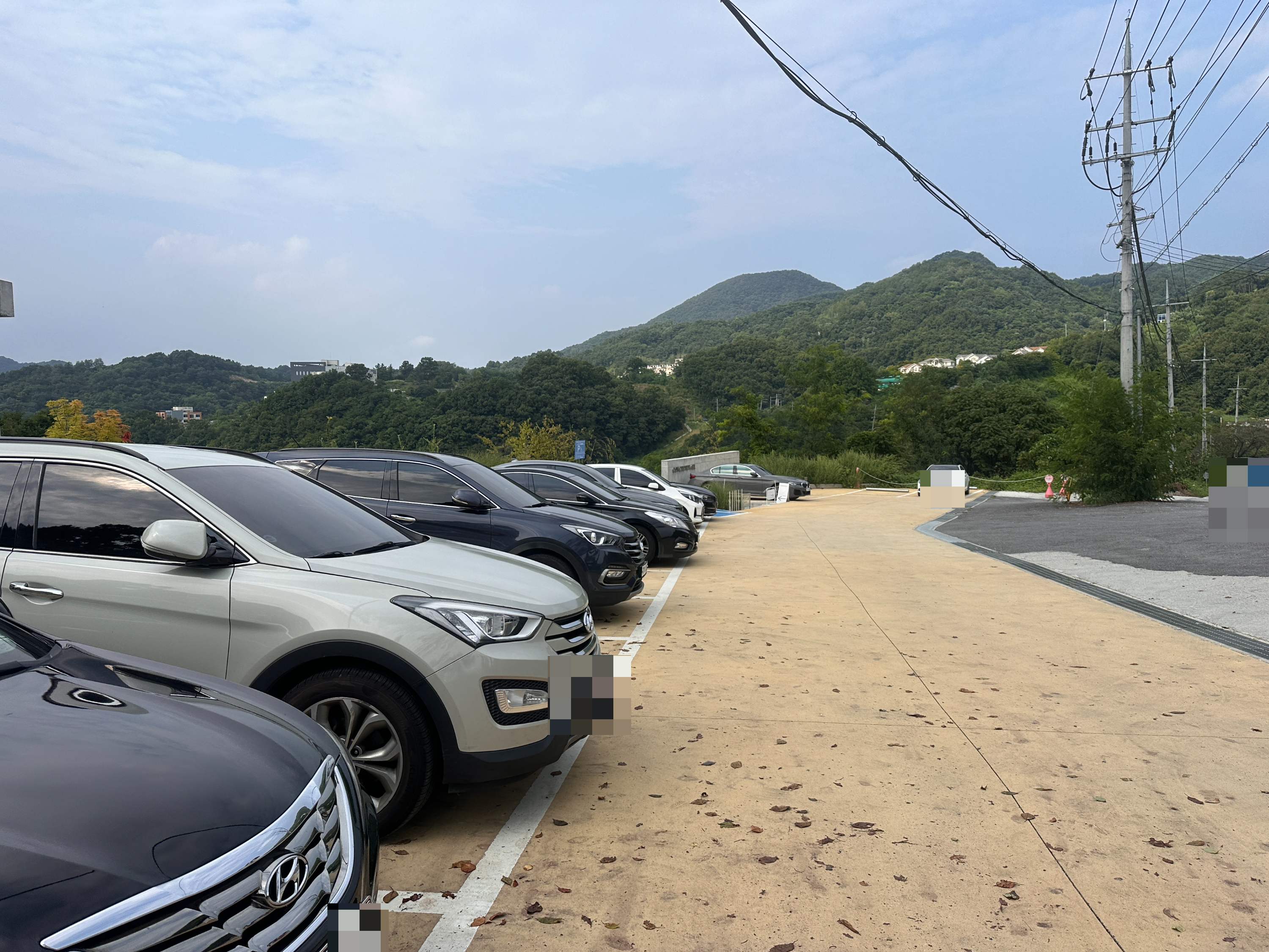 카페 위치는 제천 시내 중심부에서 살짝 떨어진 한적한 도로변에 있었는데, 도심보다는 훨씬 한산한 편이어서 차를 끌고 가기 편했습니다. 카페 앞쪽에 마련된 전용 주차 공간이 꽤 넉넉해 보였고, 조금 늦은 오후 시간에 방문했음에도 여유롭게 차를 대기가 가능했어요.