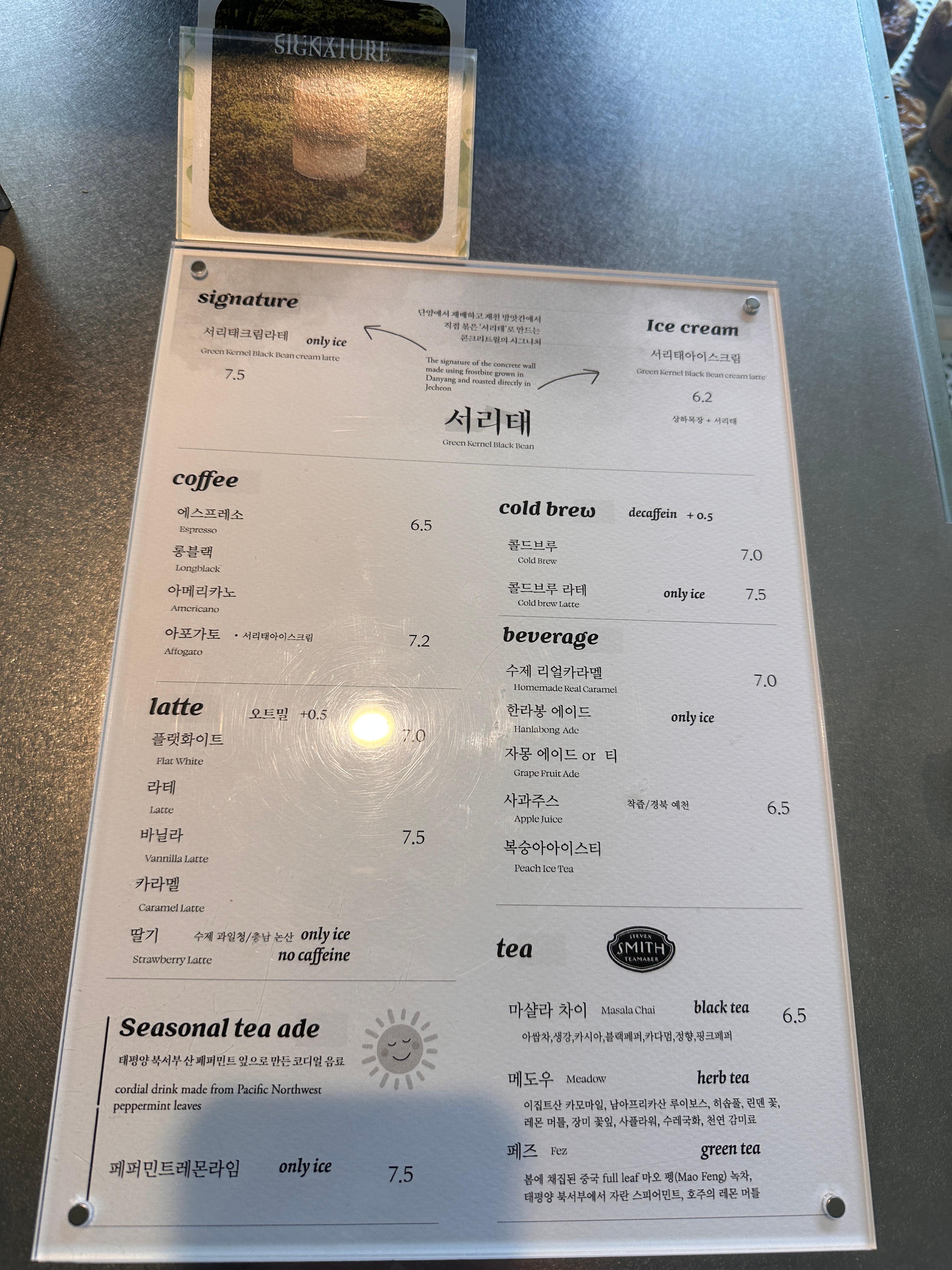 아메리카노 기준 4천~5천 원 사이, 에그타르트가 3천 원대 중후반 정도로 형성되어 있었습니다(방문 시점 기준). 제천 지역 카페 치고는 살짝 높은 듯하지만, 전체적인 분위기나 디저트 퀄리티를 감안하면 납득할 만한 수준이었어요. 사실 요즘 웬만한 프랜차이즈 카페들도 이 정도 가격을 하는 추세라, 크게 부담스럽지는 않았습니다.