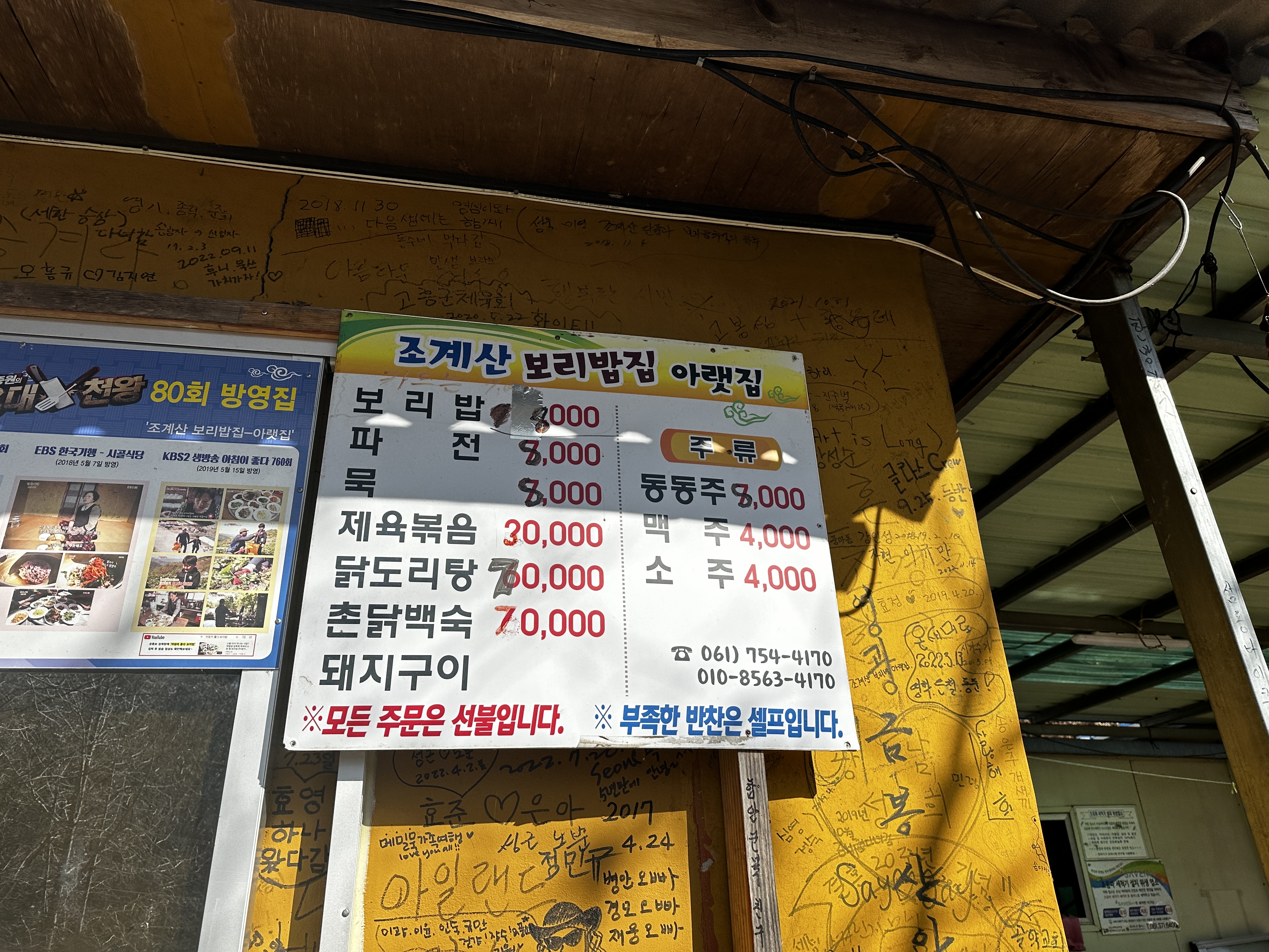 그리고 무엇보다 이 산행 후의 묘미가 바로 식사죠. 순천 맛집을 미리 검색했을 때 조계산 근방에는 보리밥이 유명하다는 정보를 알게 되었습니다. 여러 선택지 중에서도 “조계산보리밥집 아랫집”이 특히 입소문이 좋았기에, 하산 후에 바로 그곳으로 향했어요.