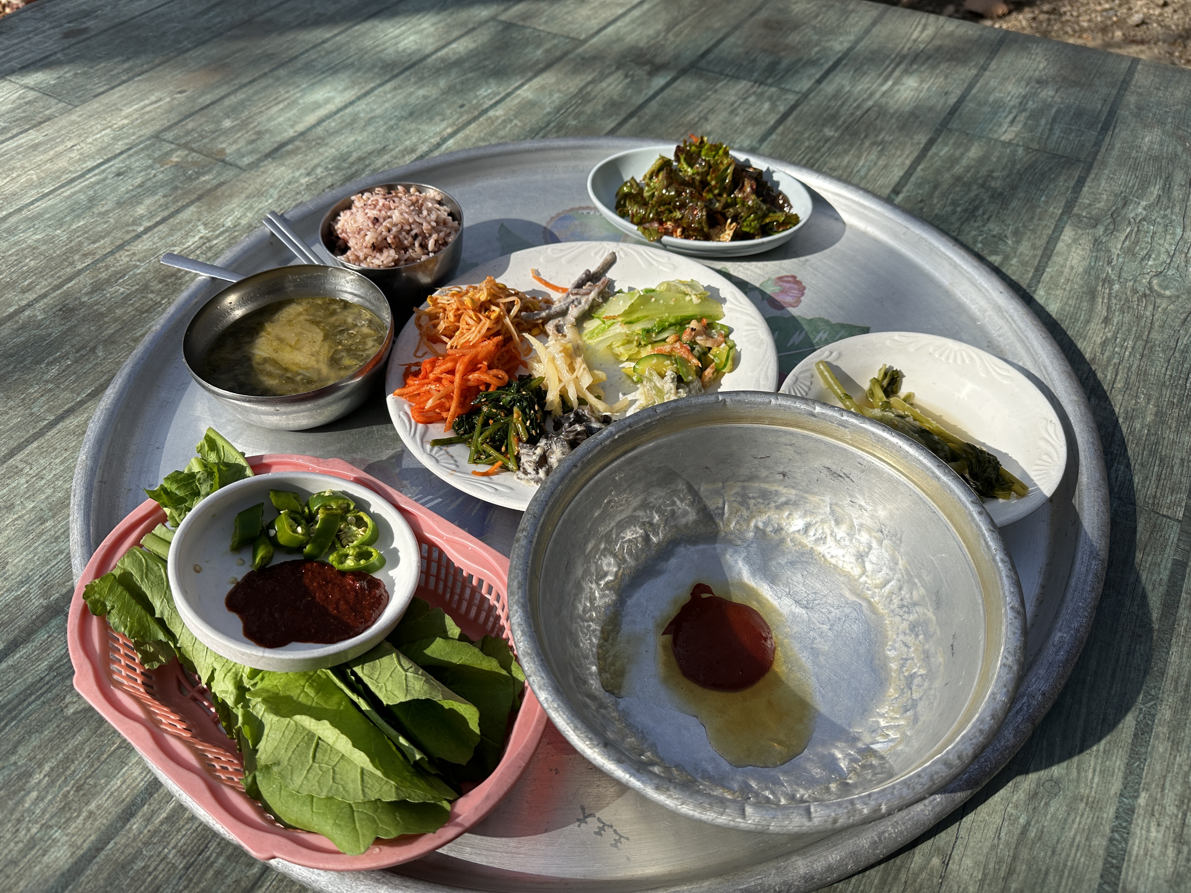 보리밥을 한 그릇 뚝딱 비우고 나니, 배가 한껏 든든해져서 등산으로 지친 체력을 재충전한 느낌이었습니다. 힘든 코스를 돌파하고 먹는 밥이라 그런지, 평소보다 훨씬 맛있게 느껴졌습니다.