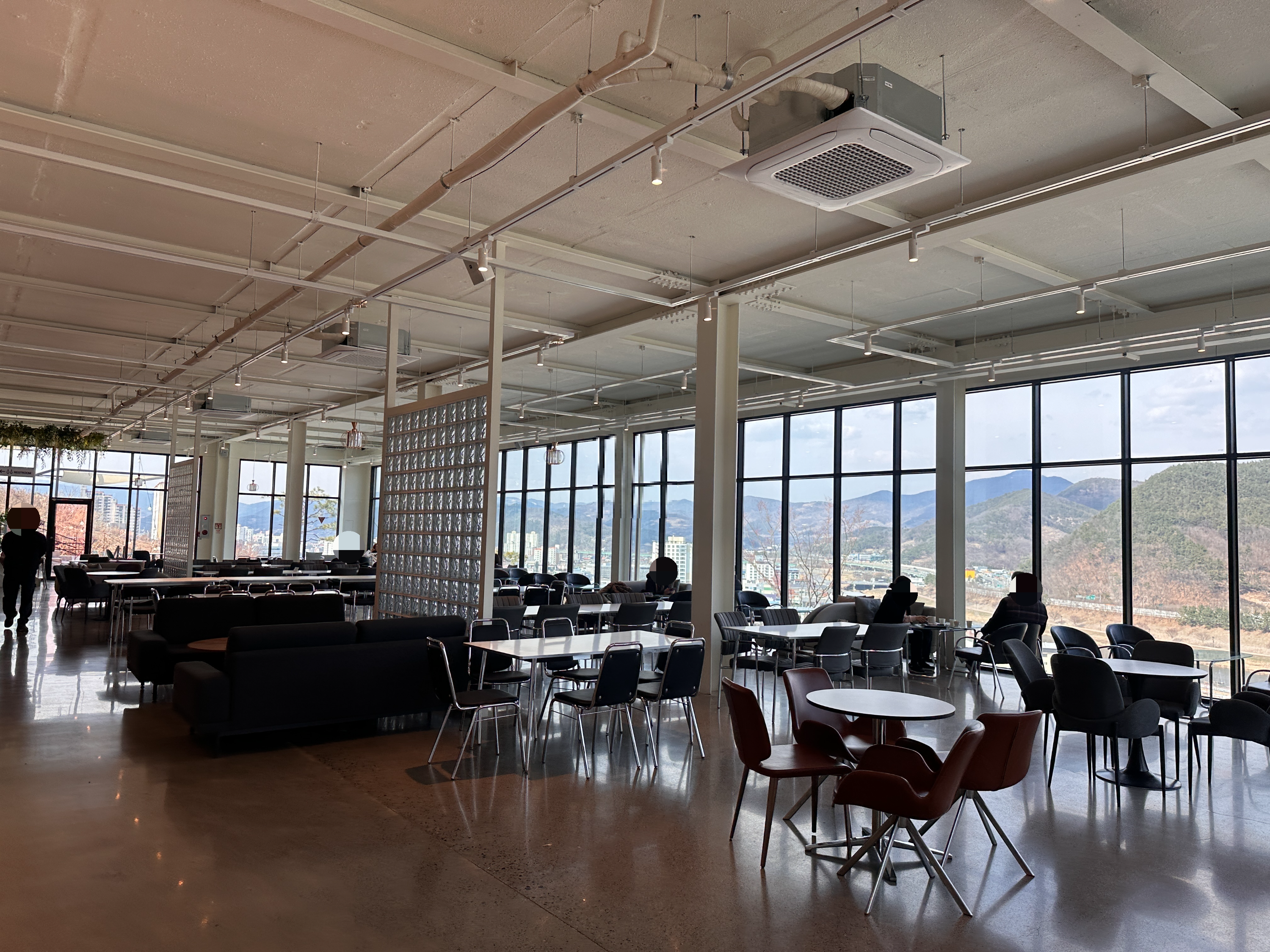 청도 대형카페답게 자리 간격이 여유롭다는 점도 매력적이었습니다. 주말이나 공휴일에 방문 인원이 몰릴 수 있지만, 공간 자체가 넓다 보니 어느 정도 분산이 될 것 같아요. 만약 주말이라면 조금 일찍 도착해서 여유롭게 자리 잡는 걸 추천해드리고 싶어요.