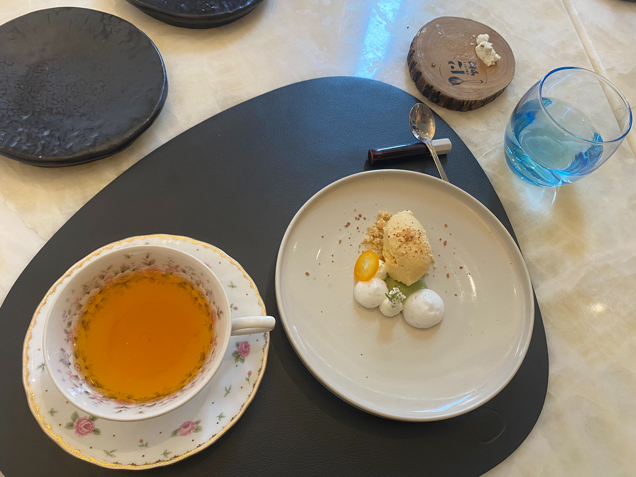 저는 점심코스가 끝날 즈음, 90분 정도가 흘러갔는데, 특별히 시간을 재촉받지 않아 여유롭게 대화를 나누며 진행할 수 있었습니다. 기념일 분위기를 내기엔 조용한 음악과 세련된 조명, 그리고 테이블 세팅이 크게 도움 됐죠. 만약 저녁 시간대에 방문했다면, 조명이 더 아늑하고 로맨틱한 느낌이 날 수도 있겠다는 생각이 들었습니다.