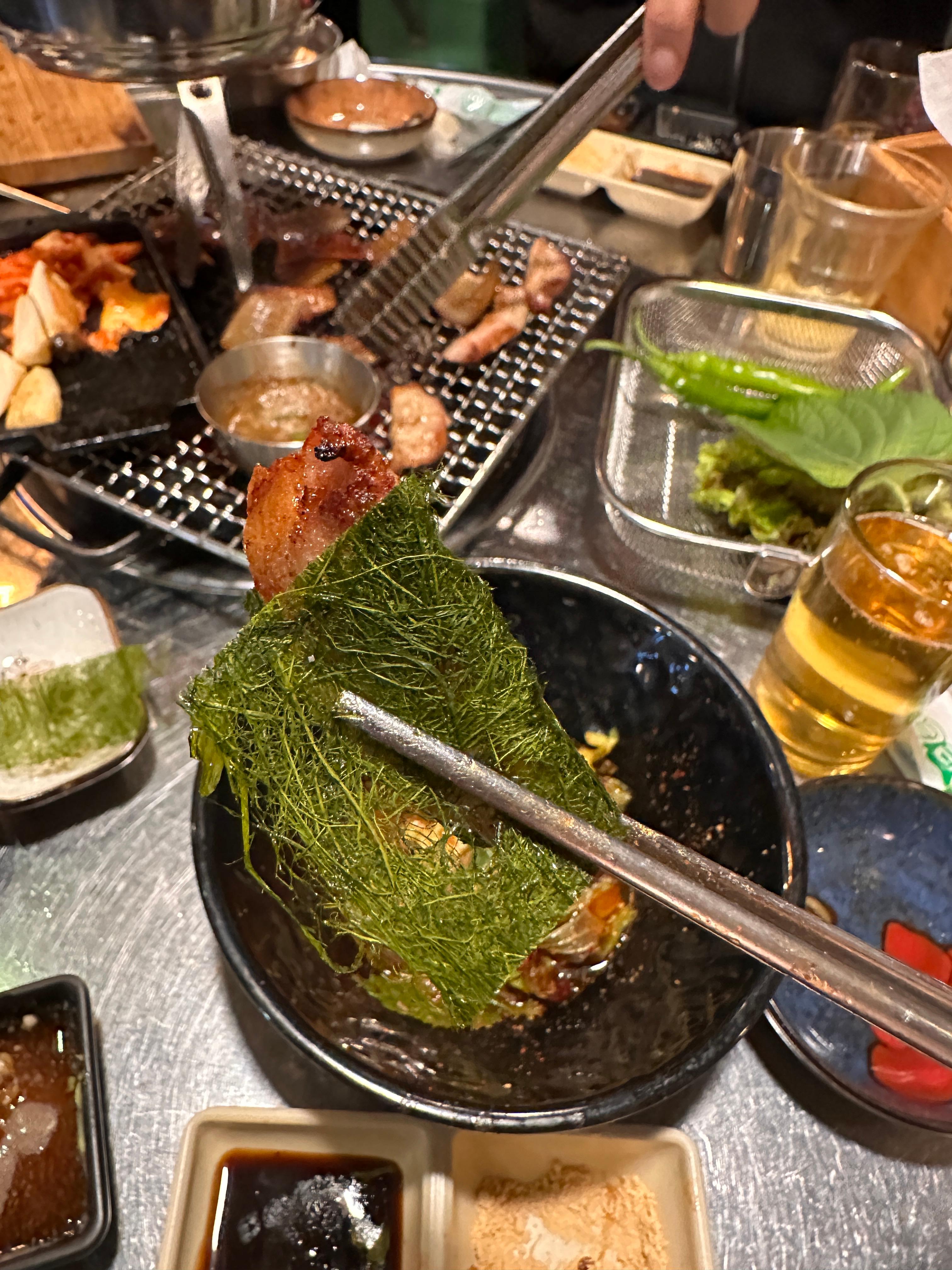 고기를 구워 먹으니 막걸리나 소주 생각이 절로 났지만, 이날은 친구와 맥주를 가볍게 곁들이며 담소를 나눴습니다. 어느새 고기가 순식간에 사라지는 걸 보니, 정말 맛있긴 맛있었나 봅니다.