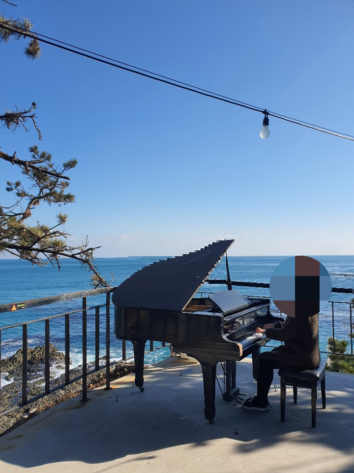 테라스(혹은 작은 야외 공간)가 있다면 가볍게 바다 소리를 듣거나 사진 찍기에 좋을 텐데, 한여름 오후라 잠시 서 있어도 땀이 나더라고요. 그럼에도 인생샷을 건지려는 방문객들이 잠깐씩 나가서 포즈를 취하는 모습이 많았습니다. 바다와 하늘을 배경으로 사진을 남기고 싶다면, 해 질 녘이 훨씬 그림 같으리라 짐작이 됐습니다.