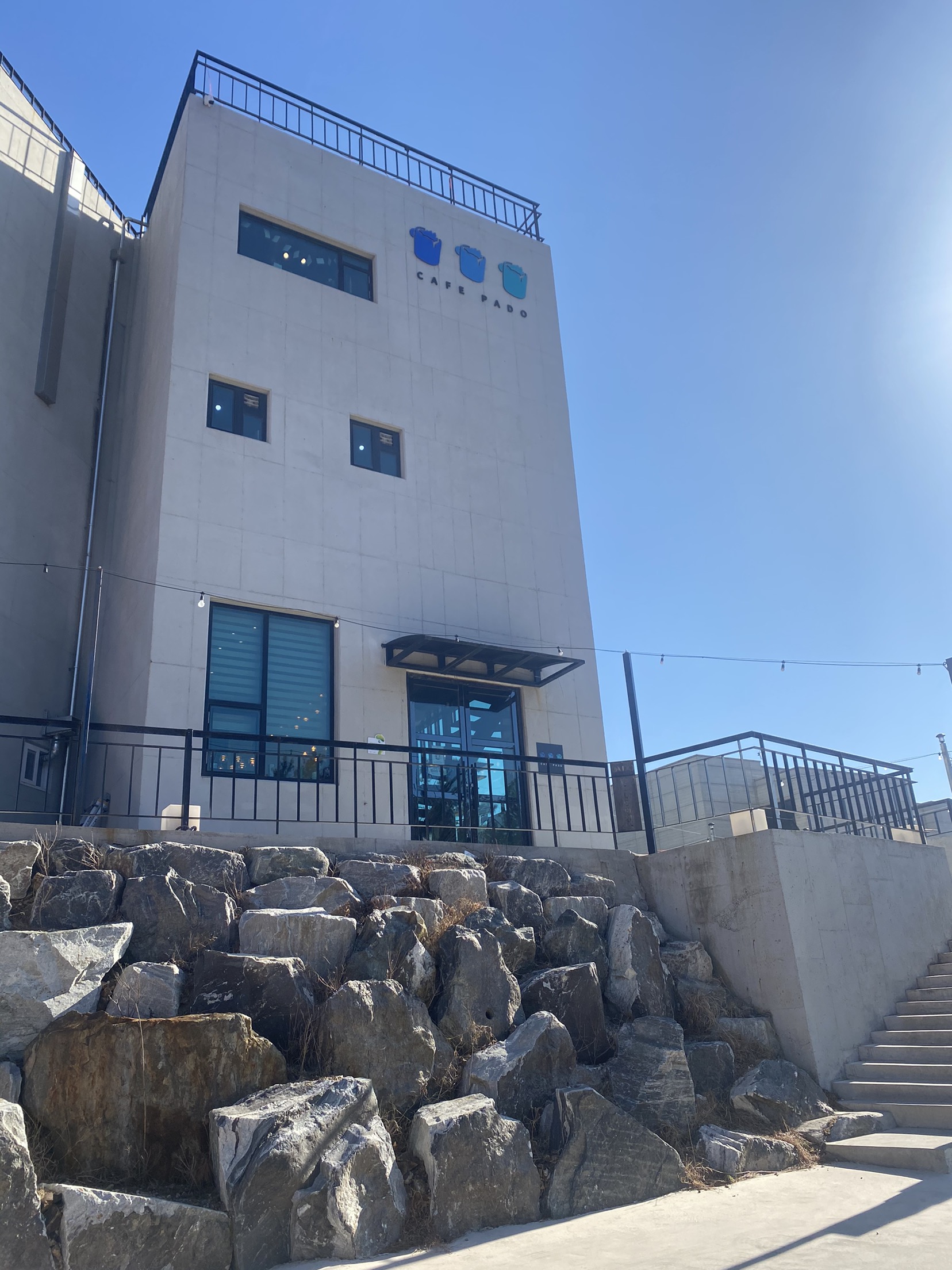 카페 파도는 구룡포 해안도로를 따라가다 보면 어느새 나타나는 바닷가 건물 중 하나입니다. 내비게이션에 ‘카페 파도 구룡포’만 입력해도 길 안내가 잘되긴 하지만, 중간중간 마을 도로가 좁아 주말이면 혼잡이 예상돼요. 가게 앞이나 가까운 공간에 주차 가능하지만, 포항 오션뷰 카페 중에서도 뷰가 좋다고 알려져 있어 방문객이 점점 늘어나는 추세인지라, 피크타임에는 꽤 붐빌 것 같습니다.