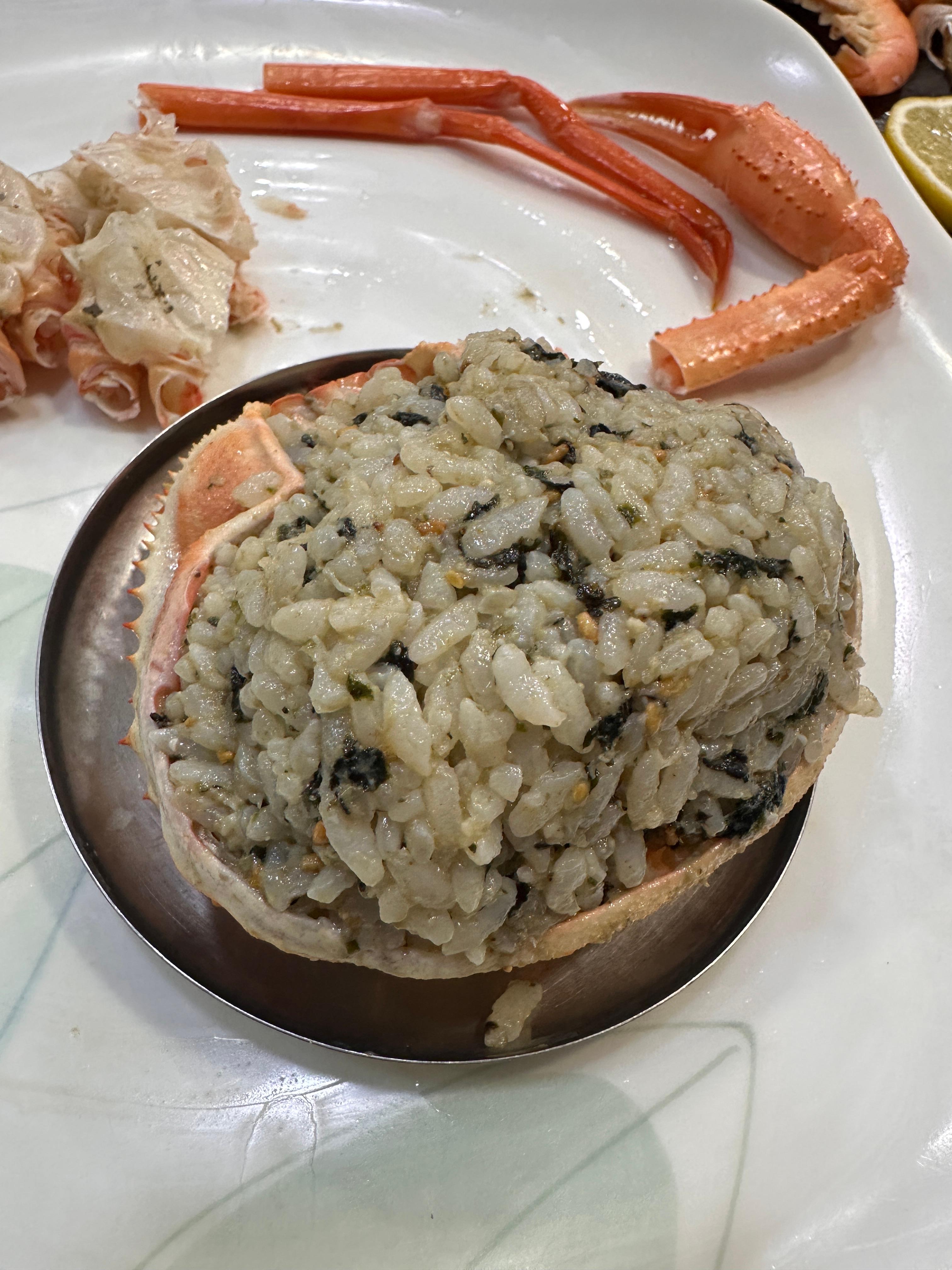 코스 마지막에 나온 게장밥은, 내장과 밥을 버무렸는데요. 고소함을 극대화한 느낌이었습니다. 다 먹고 나니 배가 꽤 불렀지만, 볶음밥만큼은 절대 남길 수 없었어요. 나중에 들으니 이 게장밥을 위해 아예 밥은 조금 덜 먹고, 코스의 끝을 기다리는 분들도 있다고 하네요. 이정도면 “포항 대게 맛집을 제대로 즐겼다”는 생각에 뿌듯함이 들었습니다.