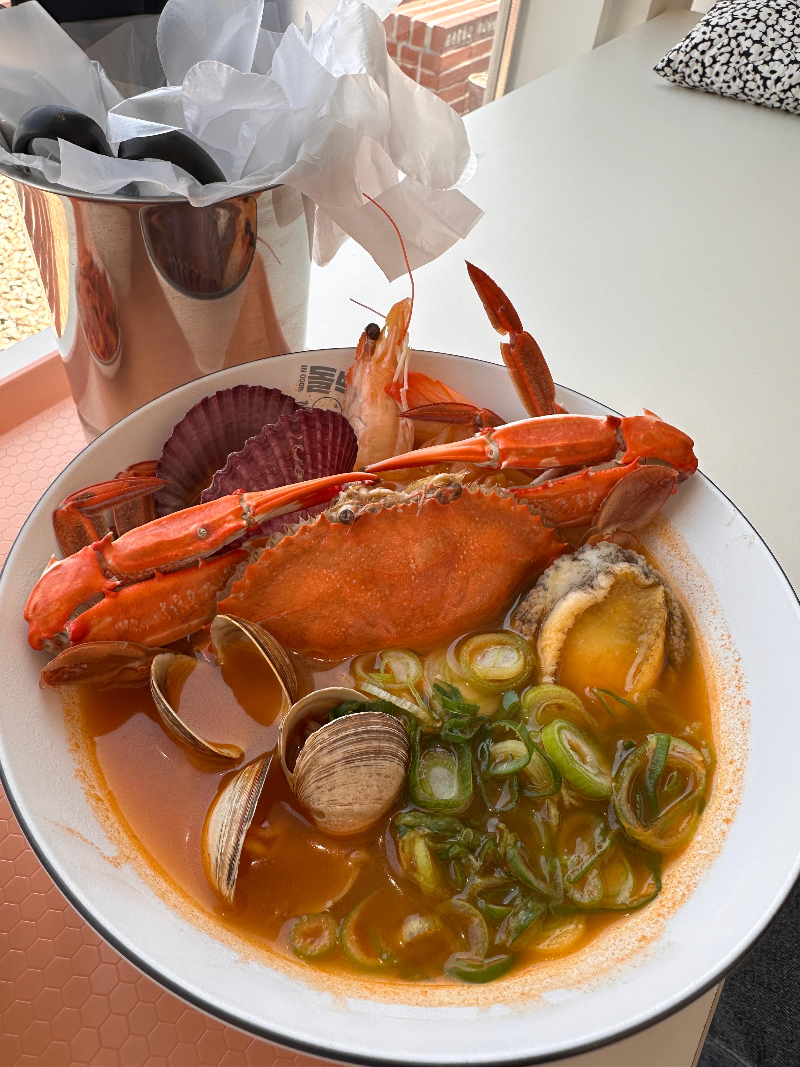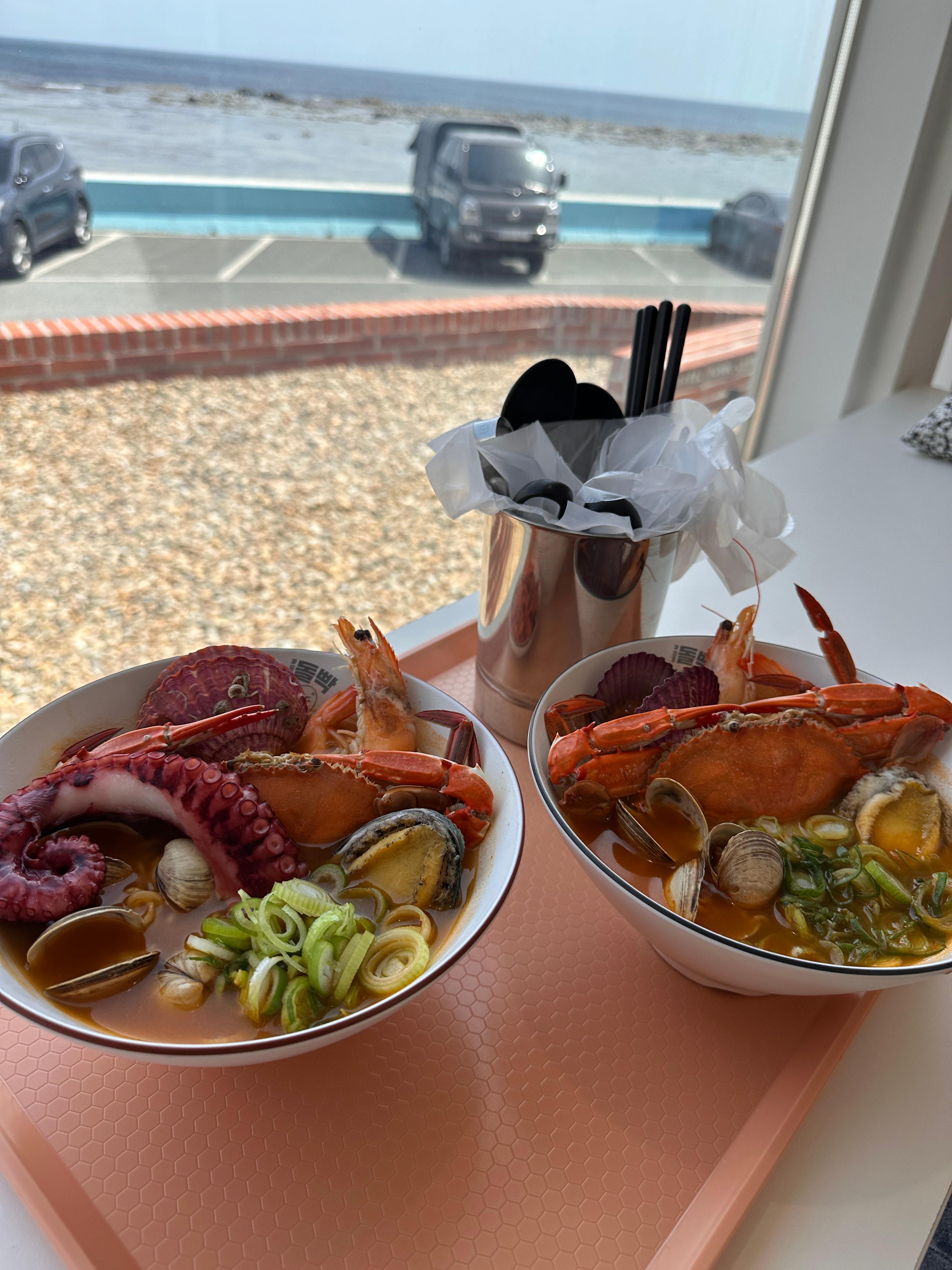 해물 자체의 신선도, 국물의 진한 맛, 그리고 바다 전망까지 삼박자가 완벽하게 어우러진 곳이었어요. 솔직히 이 가격에 이 구성, 이 위치면 가성비도 훌륭하다고 생각해요. 라면이라기보단 작은 해물탕에 면을 넣은 느낌이랄까요?