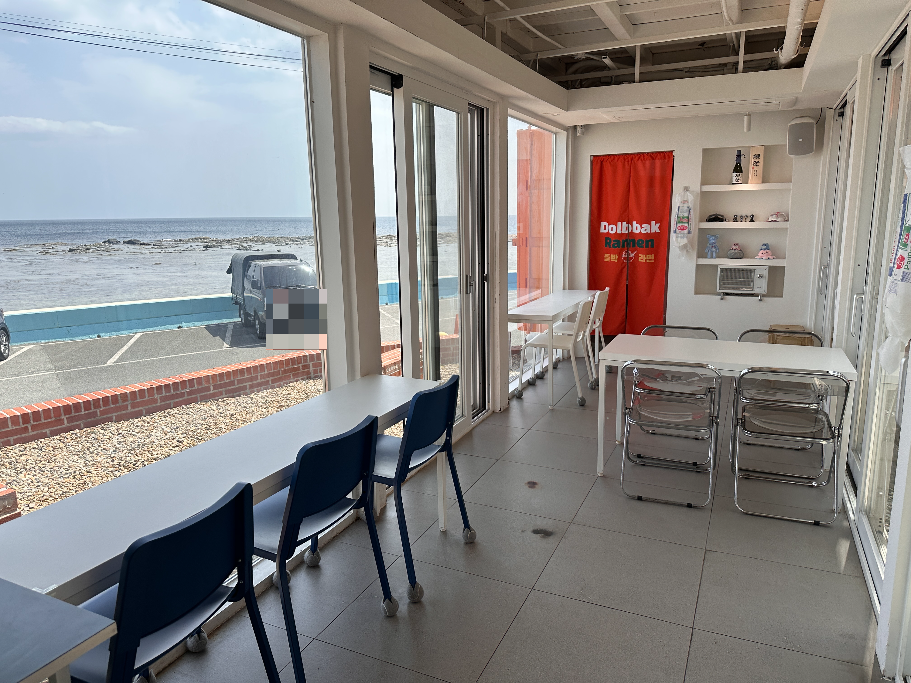 포항 오션뷰 맛집 돌빡라면은 포항 도구해수욕장 해변 도로에 붙어 있는 독채형 건물이에요. 바다 바로 앞에 있어서 창가에 앉으면 파도 소리를 BGM 삼아 식사할 수 있는 장점이 있죠.