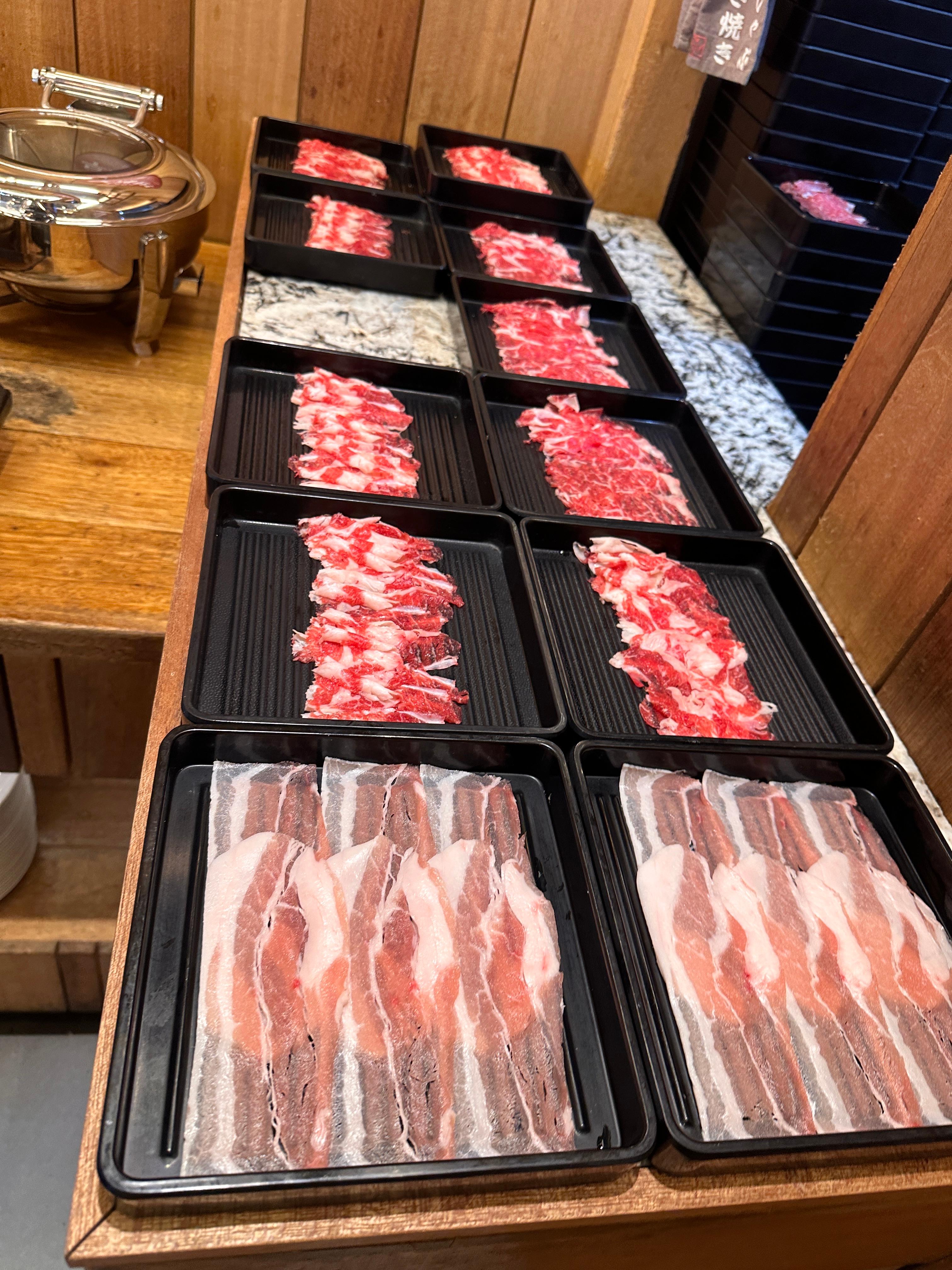 샤브샤브를 먹을 때는 곁들임 반찬이나 소스가 얼마나 잘 갖춰져 있느냐도 중요한 포인트입니다. 여기서는 셀프바가 따로 마련돼 있어, 각종 소스(예: 폰즈, 칠리, 참깨소스 등)와 야채를 직접 가져다 쓸 수 있었어요.