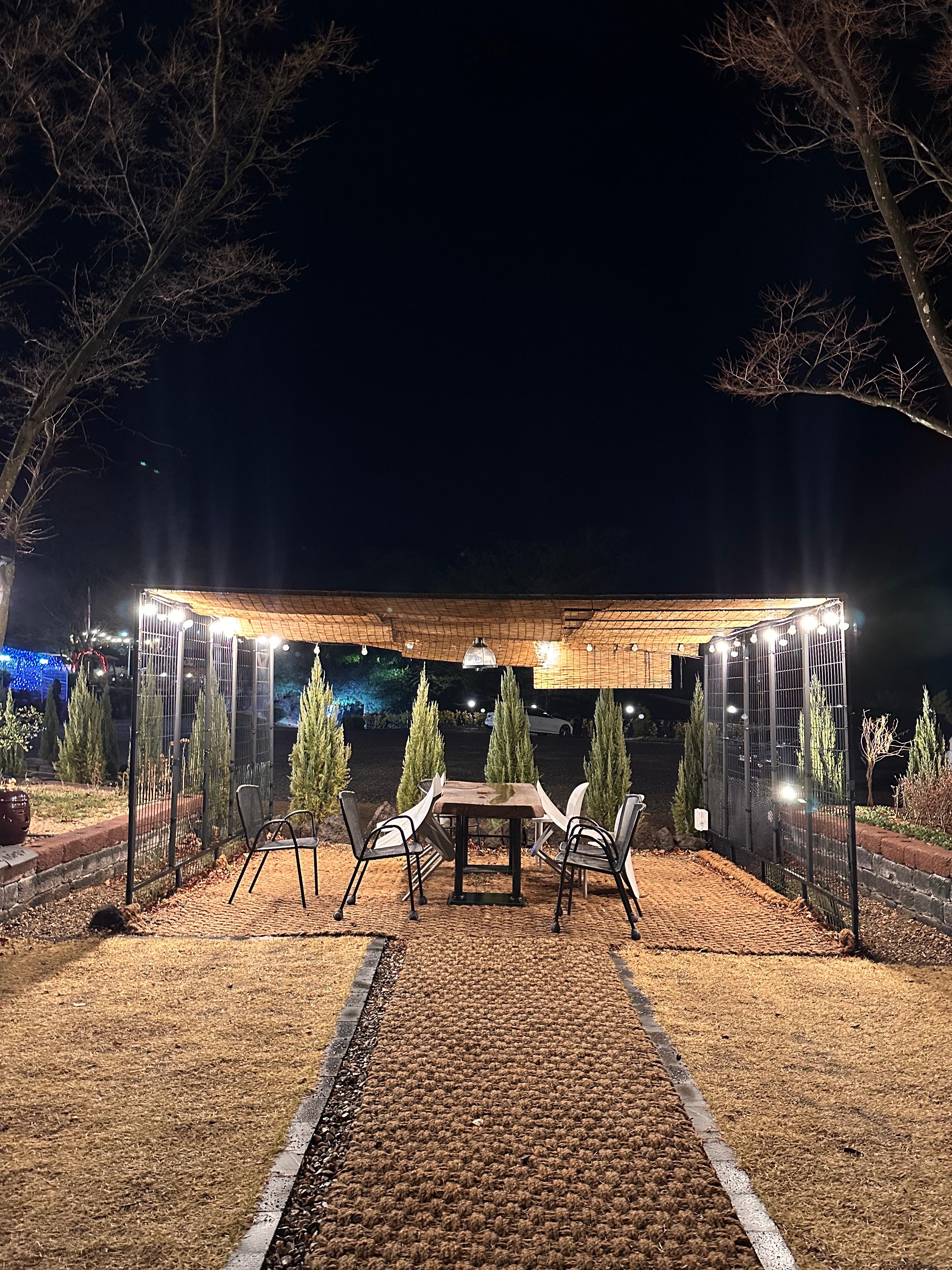 대구 도심에서 벗어나 현풍 쪽으로 이동하는 길은 차가 많이 막히지 않을 때가 많아서, 라디오를 틀어놓고 느긋하게 달리기 딱 좋았어요. 커피나 디저트를 먹은 뒤, 조금 더 드라이브를 즐기며 돌아오는 것도 스트레스 해소에 도움이 되더군요. 무엇보다 테크노폴리스 주변은 밤이 깊어지면 한적해서, 불빛이 번쩍이는 도심과는 다른 정취를 만끽할 수 있었습니다. - 야외 자리 & 조명